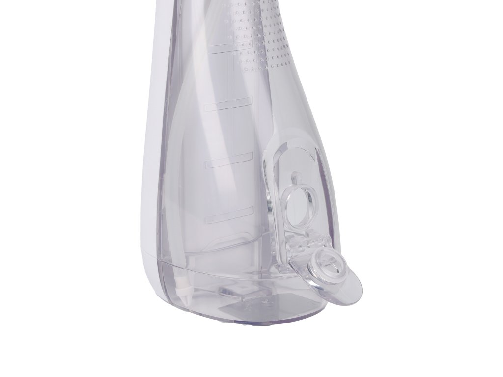 Praktická priehľadná nádržka s objemom 200 ml poskytuje dostatočnú kapacitu vody na jeden kompletný zavlažovací cyklus bez potreby priebežného dopĺňania. Pre maximálne pohodlie je vyrobená tak, aby sa dala plniť dvoma spôsobmi – buď rýchlo cez praktickú klapku, alebo úplným vybratím zásobníka, čo výrazne uľahčuje pravidelné čistenie a udržiavanie vysokej úrovne hygieny prístroja. Priehľadný materiál vám navyše umožňuje mať neustály prehľad o aktuálnom stave hladiny vody počas celého procesu čistenia medzizubných priestorov.