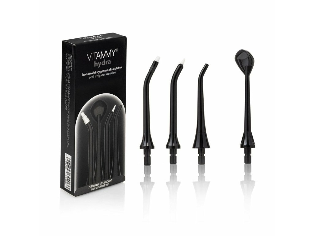VITAMMY Hydra Sada multifunkčných náhradných násad na zubnú sprchu, čierna