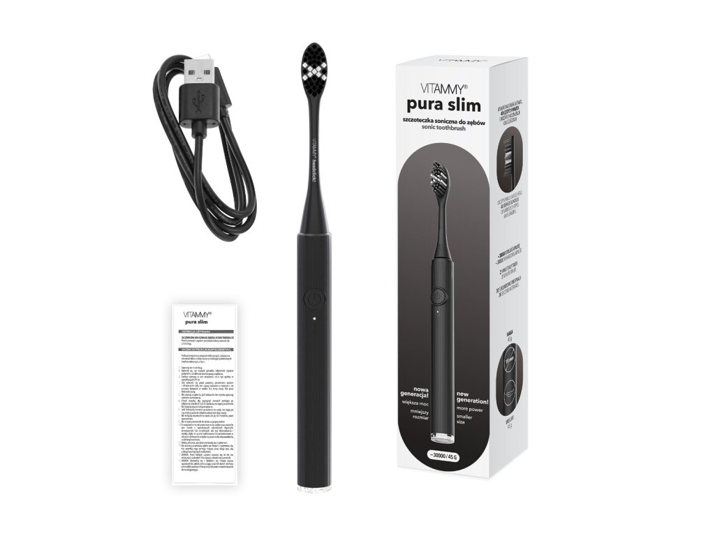 VITAMMY Pura Slim Ultralight Black Sonická zubná kefka novej generácie, čierna