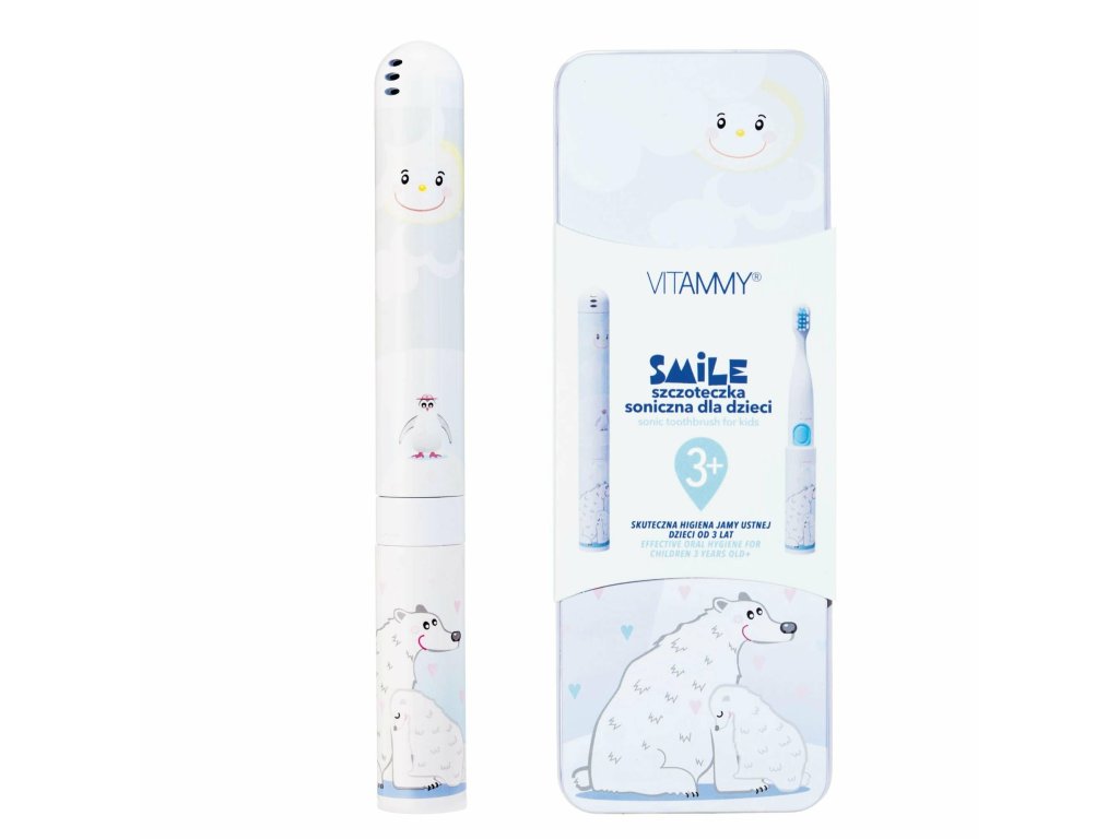 Vitammy Smile je sonická zubná kefka vytvorená s ohľadom na tých najmenších, ktorá kombinuje moderné technológie s rozprávkovým dizajnom. Vďaka sonickej pulzácii 8-14 tisíc pohybov za minútu účinne odstraňuje zubný povlak a stará sa o zdravie ďasien a zároveň podporuje deti v učení sa čistiť si zuby. Ľahký, ergonomický dizajn a mäkké vlákna umožňujú bezpečné a pohodlné používanie od 3 rokov. Vodotesné puzdro, praktický ochranný kryt a kovové puzdro pomáhajú udržiavať hygienu a ukladajú všetko príslušenstvo na jednom mieste. Farebné dizajny od Marty Bileckej z nej robia nielen funkčnú pomôcku, ale aj obľúbenú vychytávku pre deti.