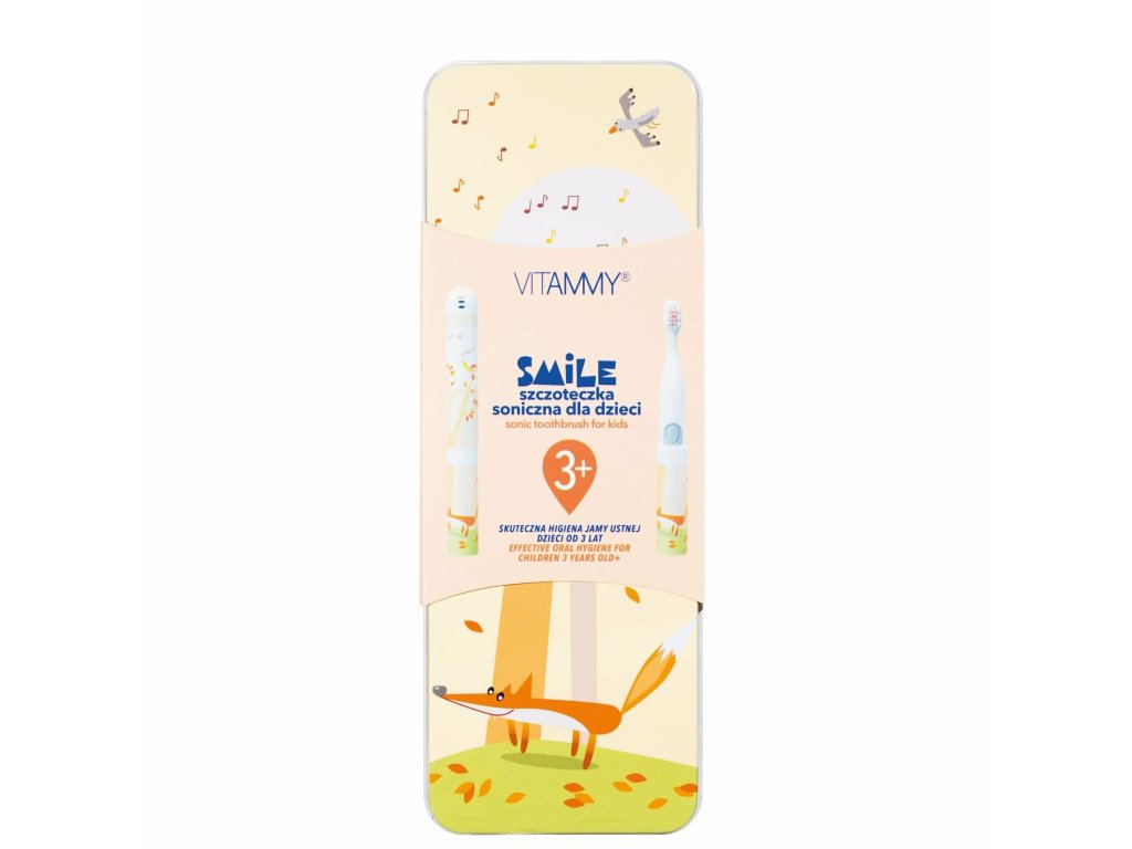 Vitammy Smile je sonická zubná kefka vytvorená s ohľadom na tých najmenších, ktorá kombinuje moderné technológie s rozprávkovým dizajnom. Vďaka sonickej pulzácii 8-14 tisíc pohybov za minútu účinne odstraňuje zubný povlak a stará sa o zdravie ďasien a zároveň podporuje deti v učení sa čistiť si zuby. Ľahký, ergonomický dizajn a mäkké vlákna umožňujú bezpečné a pohodlné používanie od 3 rokov. Vodotesné puzdro, praktický ochranný kryt a kovové puzdro pomáhajú udržiavať hygienu a ukladajú všetko príslušenstvo na jednom mieste. Farebné dizajny od Marty Bileckej z nej robia nielen funkčnú pomôcku, ale aj obľúbenú vychytávku pre deti.