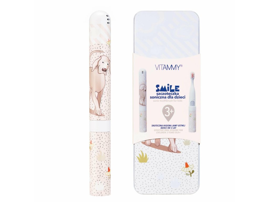 Vitammy Smile je sonická zubná kefka vytvorená s ohľadom na tých najmenších, ktorá kombinuje moderné technológie s rozprávkovým dizajnom. Vďaka sonickej pulzácii 8-14 tisíc pohybov za minútu účinne odstraňuje zubný povlak a stará sa o zdravie ďasien a zároveň podporuje deti v učení sa čistiť si zuby. Ľahký, ergonomický dizajn a mäkké vlákna umožňujú bezpečné a pohodlné používanie od 3 rokov. Vodotesné puzdro, praktický ochranný kryt a kovové puzdro pomáhajú udržiavať hygienu a ukladajú všetko príslušenstvo na jednom mieste. Farebné dizajny od Marty Bileckej z nej robia nielen funkčnú pomôcku, ale aj obľúbenú vychytávku pre deti.