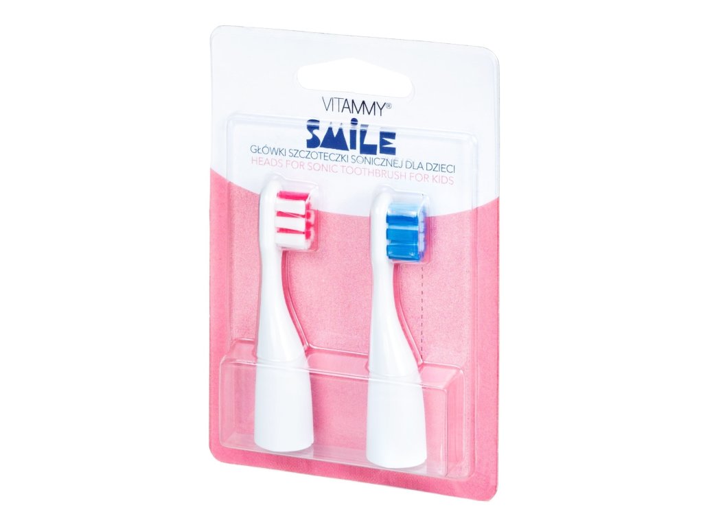 VITAMMY SMILE náhradné násady na detské zubné kefky Smile, 2ks, ružová/modrá