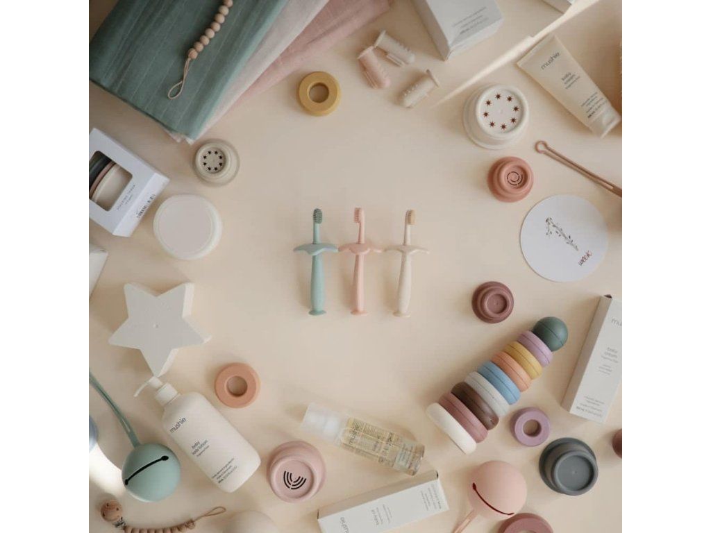 S touto hravou zubnou kefkou od Mushie získajú najmenší úvod do samostatného čistenia zúbkov vhodný pre deti. Budovanie dobrých návykov sa začína skoro a s cvičnou zubnou kefkou môžu deti začať uprednostňovať ústnu hygienu. Zubná kefka je vyrobená zo 100% potravinárskeho silikónu a je navrhnutá so super mäkkými štetinkami, ktoré jemne čistia a stimulujú ďasná a zuby. Zubná kefka je dodávaná so silikónovou sacou základňou pre pohodlie a odnímateľným bezpečnostným krytom, ktorý zabraňuje dáveniu a uduseniu. Je úplne bezpečný a ľahko sa používa! Vyberte si z rôznych jemných farieb. Podrobnosti o tréningovej zubnej kefke Mushie:- Materiál: 100% potravinársky silikón