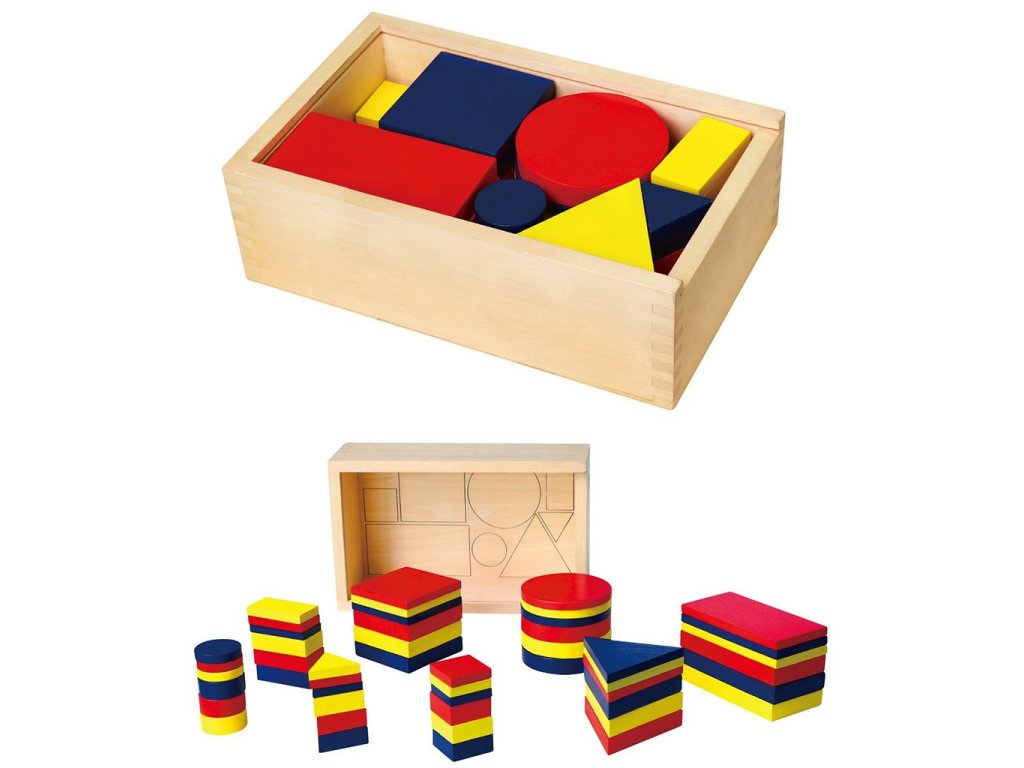 Geometrické kocky pomáhajú deťom naučiť sa rozpoznávať a pomenovať farby, geometrické tvary (kruh, štvorec, obdĺžnik a trojuholník), rozvíjať predstavivosť, zlepšovať počítanie.