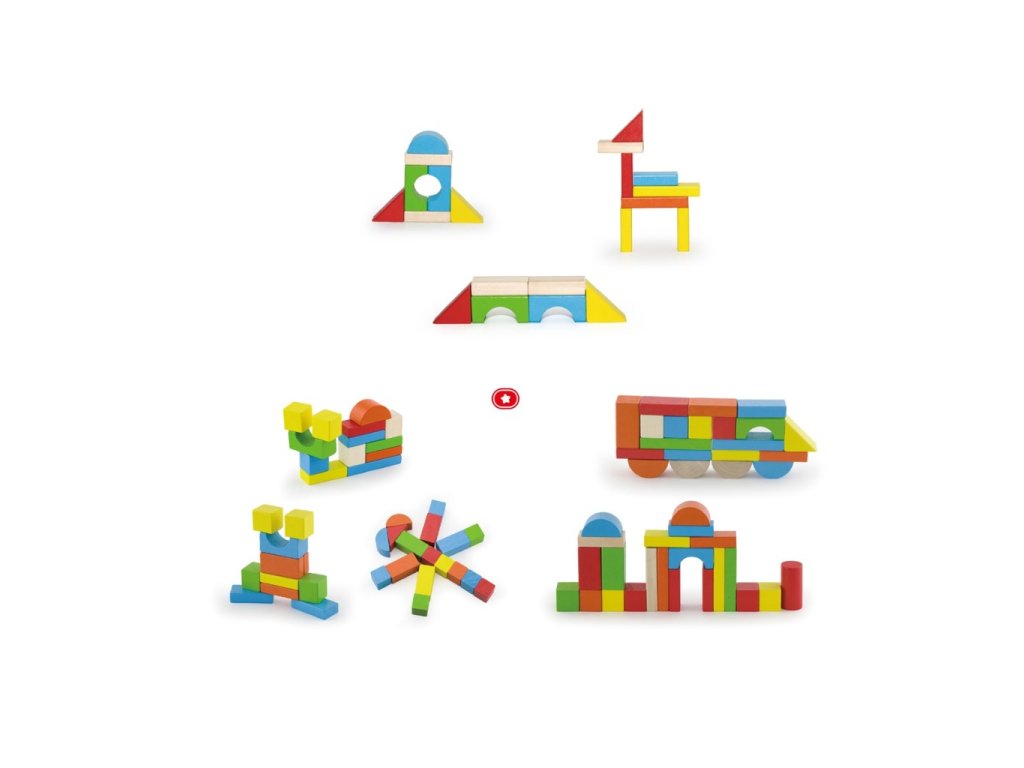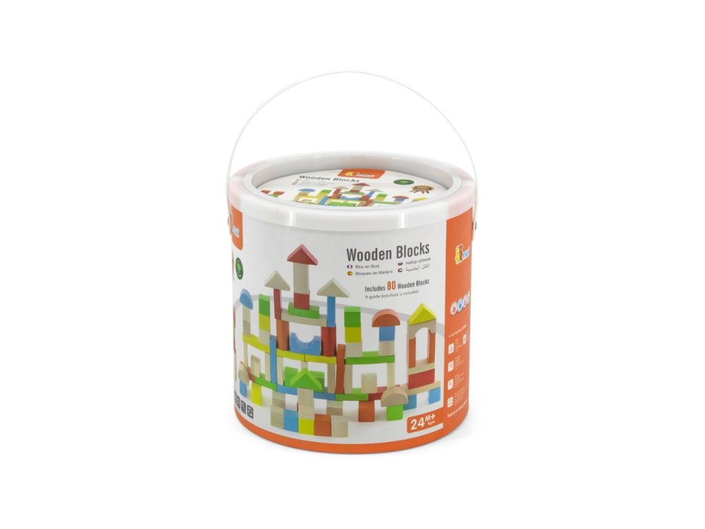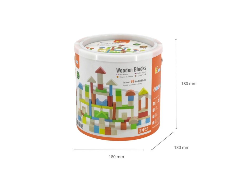 Farebné kocky vo vedierku Viga. Prináša 80 úžasných dielov stavebnice aj pre tých najmenších staviteľov. Kocky majú rôzne tvary, veľkosti, krásne farby. Nájdete tu tvary ako kocka, kváder, trojuholník, valec, obdĺžnik, most, a iné. Toto vedierko s kockami tak slúži ako motorická pomôcka, ktorá deti učí spoznávať tvary a zaobchádzať s kockami. Hračka pomáha zlepšiť manuálnu zručnosť a obratnosť, učí dieťa rozpoznať tvary a farby, zapája a rozvíja zmysel pre pozorovanie. Hračka je vyrobená z lakovaného dreva. Našou prioritou je bezpečnosť a kvalita našich výrobkov, a preto farby použité na hračkách nie sú toxické a spĺňajú bezpečnostné štandardy (EN71 a ASTM). Pre deti od 2 rokov.Dodatočné parametre