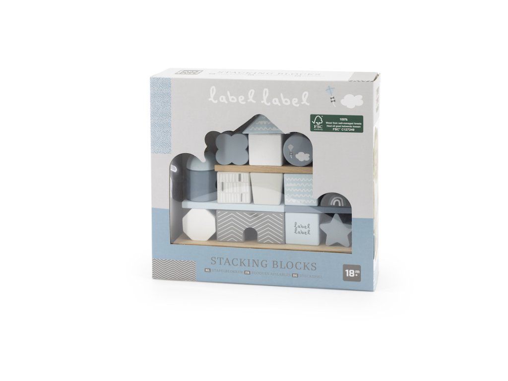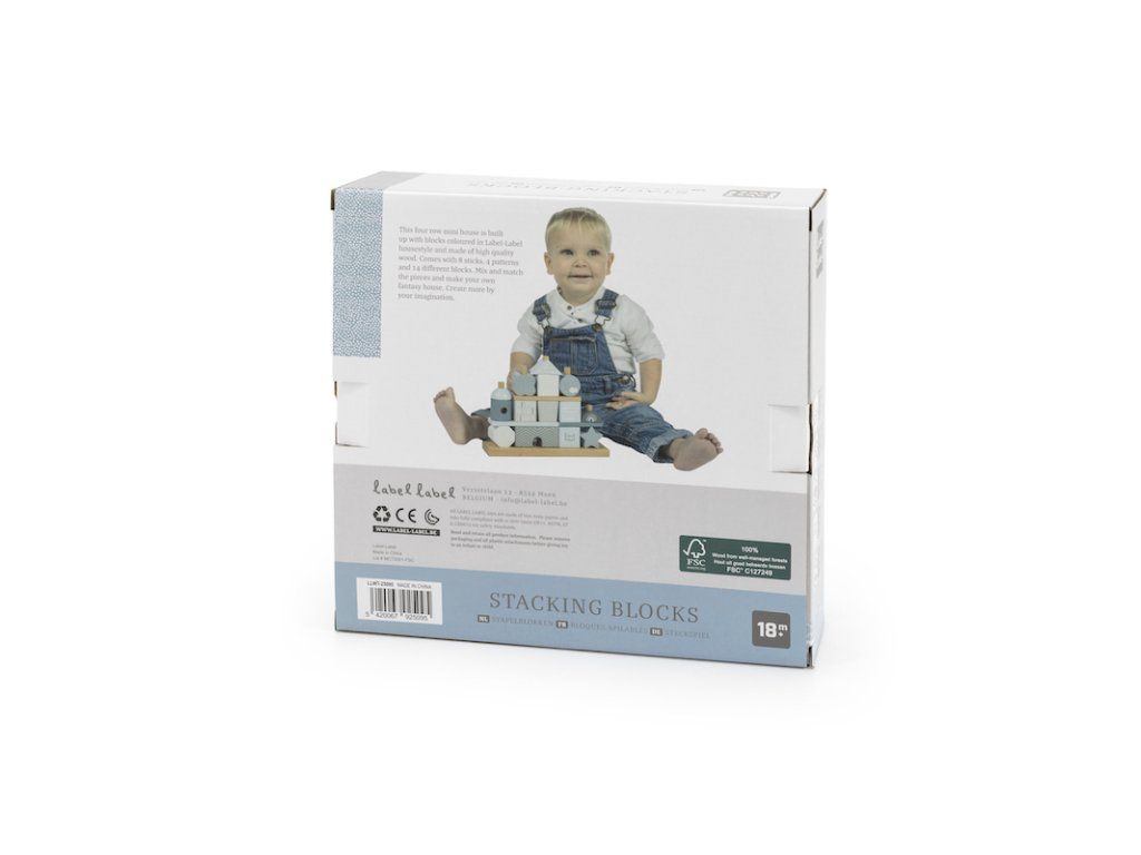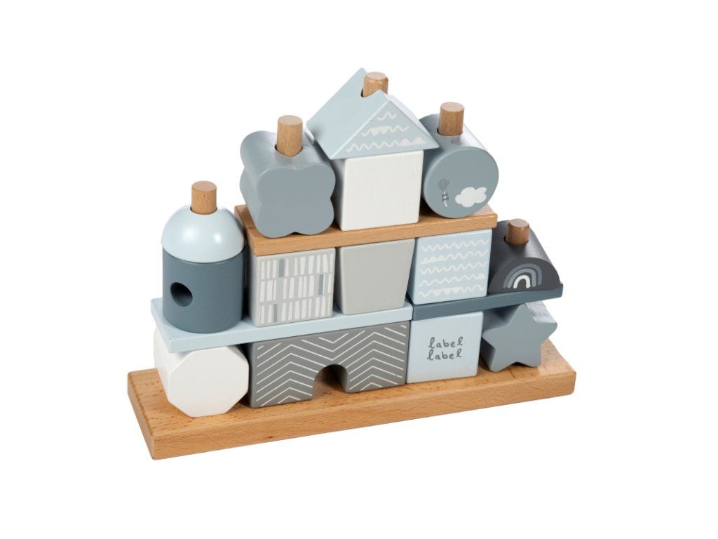 Label Label Drevené kocky Domček, modré