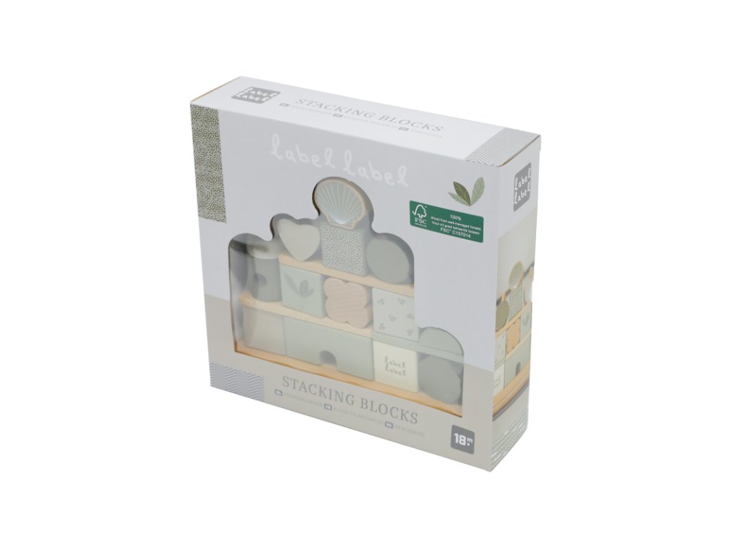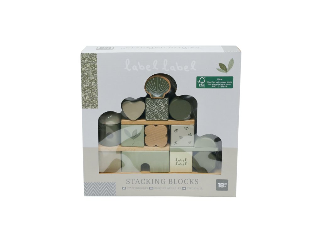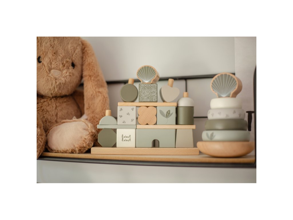 Label Label Drevené kocky Domček, Olive Green