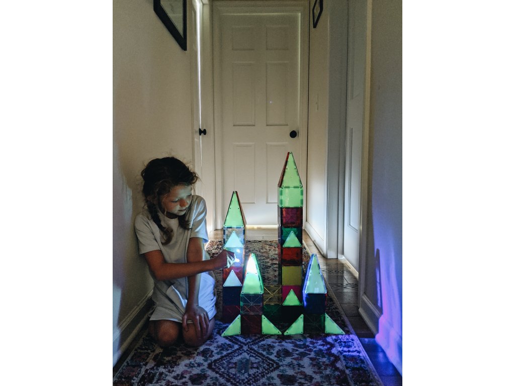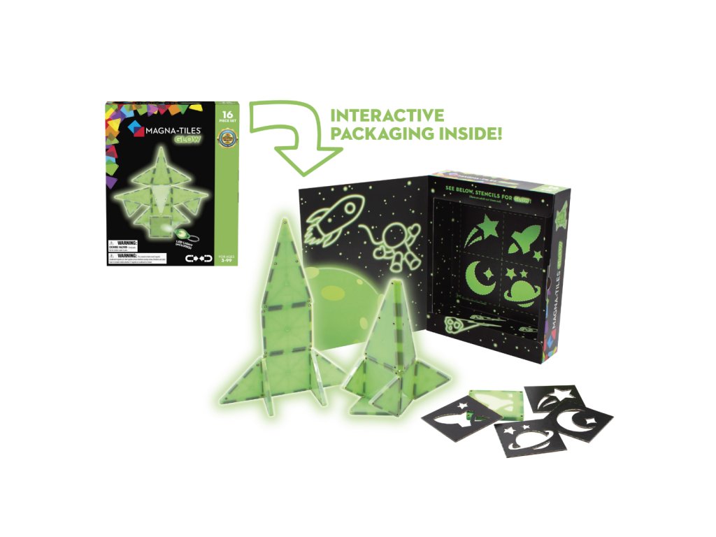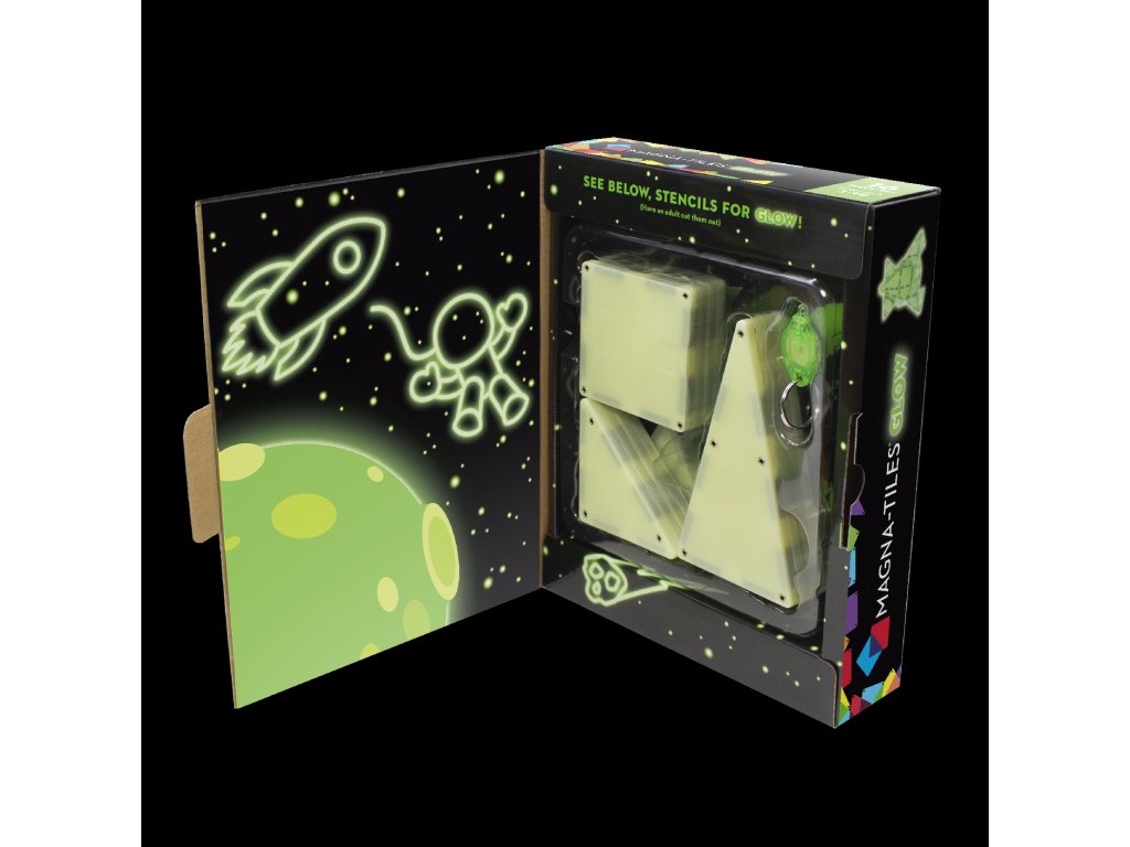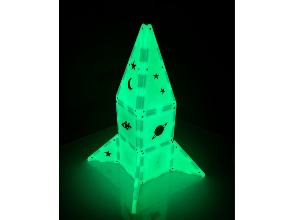 Magnetická stavebnica Glow 16 dielov Postavte si svietiaci hrad alebo raketu S jedinečnými žiariacimi magnetickými dielikmi vytvoríte svietiace hrady či rakety. Sada obsahuje dieliky, ktoré svietia v tme a predstavujú zábavný a originálny doplnok k existujúcim sadám MAGNA-TILES. Žiarivá vlastnosť magnetických dielikov sa aktivuje pri priamom kontakte so slnečnými lúčmi alebo pomocou svetla z priloženého zdroja. Ako to funguje? Dlaždice obsahujú fosfor, bezpečný a prirodzene sa vyskytujúci minerál, ktorý po nabití energiou vyžaruje svetlo.Zmysluplná stavebnica pre malých staviteľov MAGNA-TILES je zástancom zmysluplnej hry, to znamená zábavnej a pútavej, no zároveň založenej na rozvíjaní detských zručností. Táto stavebnica podporuje rozvoj koordinácie ruka-oko, jemnej motoriky a logického myslenia prostredníctvom skúmania príčiny a následku. Bezpečnosť a špičková kvalita sú zaistené použitím potravinárskeho, netoxického plastu MABS bez BPA, ftalátov a latexu. Pevná konštrukcia dielikov zabraňuje praskaniu a udržiava magnety bezpečne na svojom mieste.Sada obsahuje 16 magnetických dielikov:4x štvorec,4x pravý trojuholník,4x rovnostranný trojuholník,4x rovnoramenný trojuholník,1x LED svetlo na kľúče.Dodatočné parametre