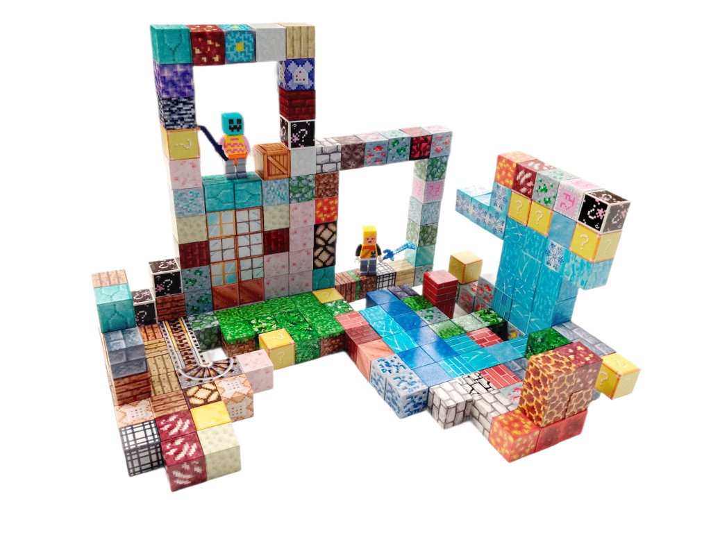 Všetky dieliky sú vyrobené z ľahkého plastu s hladkým povrchom, ktorý je príjemný na dotyk a bezpečný pre detské ruky. Táto magnetická stavebnica podporuje priestorovú predstavivosť, logické myslenie a motorické zručnosti. Skvele sa hodí aj ako darček pre fanúšikov stavebníc alebo pixelovej estetiky Minecraftu. Vďaka magnetom stavby dobre držia a ľahko sa premiestňujú či rozširujú.