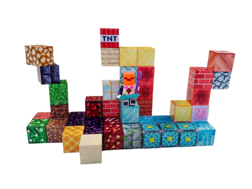 Sada obsahuje 50 magnetických kociek s potlačami známych herných blokov a jednu hernú figúrku s výbavou, ktorá dodáva stavaniu dobrodružný rozmer. Kocky sú ľahké, jednoducho uchopiteľné a ideálne pre detské ruky.
