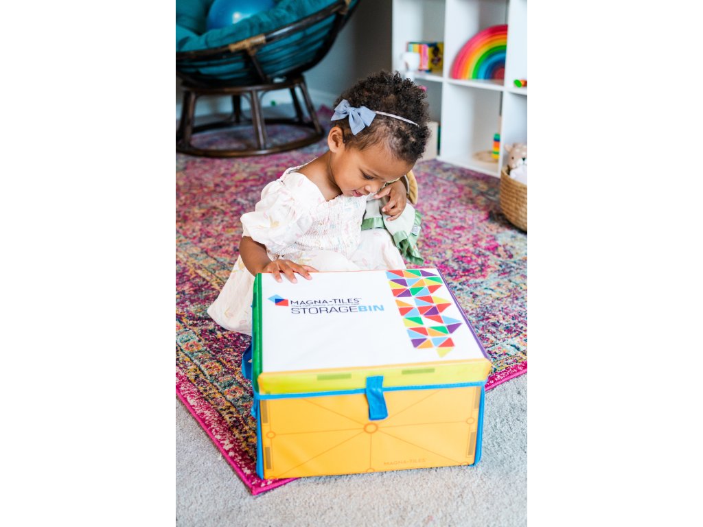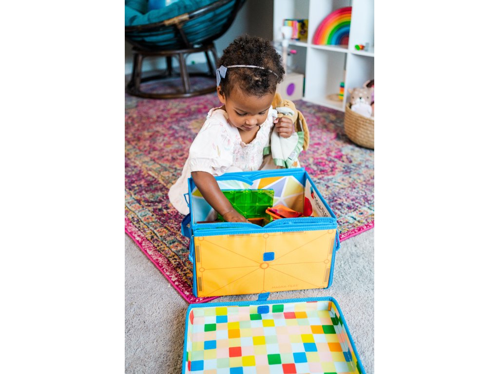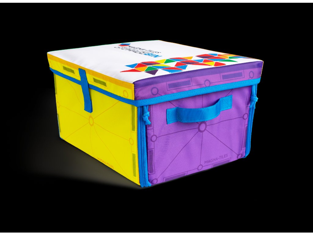Úložný box a podložka Úložný box a interaktívna hracia podložka v jednom Úložný box a interaktívna hracia podložka v jednom dokáže uschovať až 300 magnetických dielikov. Keď príde čas na hru, box sa jednoducho rozloží do farebnej hracej podložky, na ktorej sa deti môžu hrať a vytvárať originálne stavby. Po skončení hry stačí boky boxu zložiť, zazipsovať za hracia podložka sa opäť zmení na pevný úložný box, ktorý je ideálny na cesty, k starým rodičom alebo na hranie u priateľov.Praktický box do detskej izby Úložný box je navrhnutý tak, aby bol praktický a trvácny. Vďaka svojmu dvojúčelovému dizajnu pomáha udržiavať poriadok v detskej izbe či triede a zároveň chráni hračky pred poškodením. Vzorovaný dizajn hracej podložky podporuje učenie detí, pomáha im rozpoznávať tvary a farby a rozvíja jemnú motoriku. Box je vyrobený z odolných materiálov, ktoré zabezpečujú jeho dlhú životnosť.Balenie obsahuje: 1x úložný kôš, ktorý slúži aj ako podložka na hranieDodatočné parametre