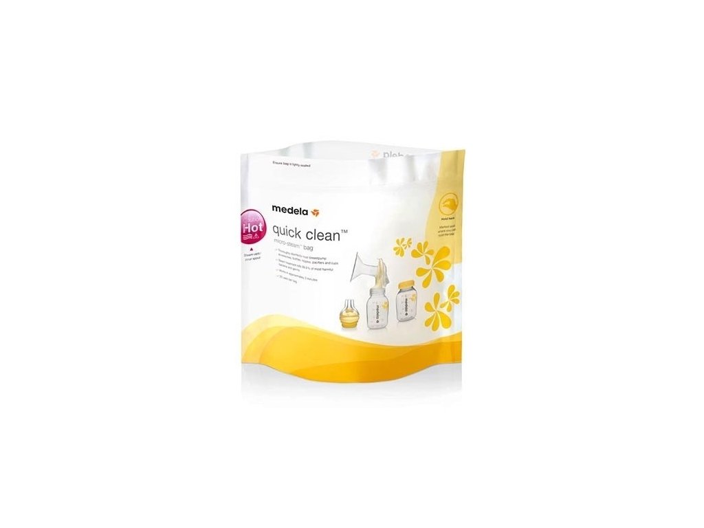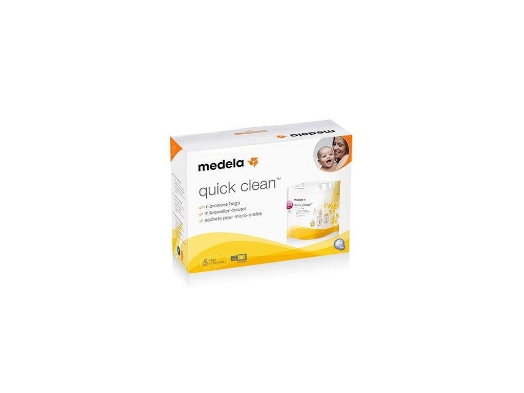 Používanie vrecúšok Medela Quick Clean je rýchly a osvedčený spôsob dezinfekcie príslušenstva na dojčenie. Pomocou mikrovlnnej rúry môžete príslušenstvo dezinfikovať už za tri minúty – je to rýchlejšie a jednoduchšie ako varenie. Odstraňuje tiež 99,9 percent najškodlivejších baktérií a choroboplodných zárodkov.