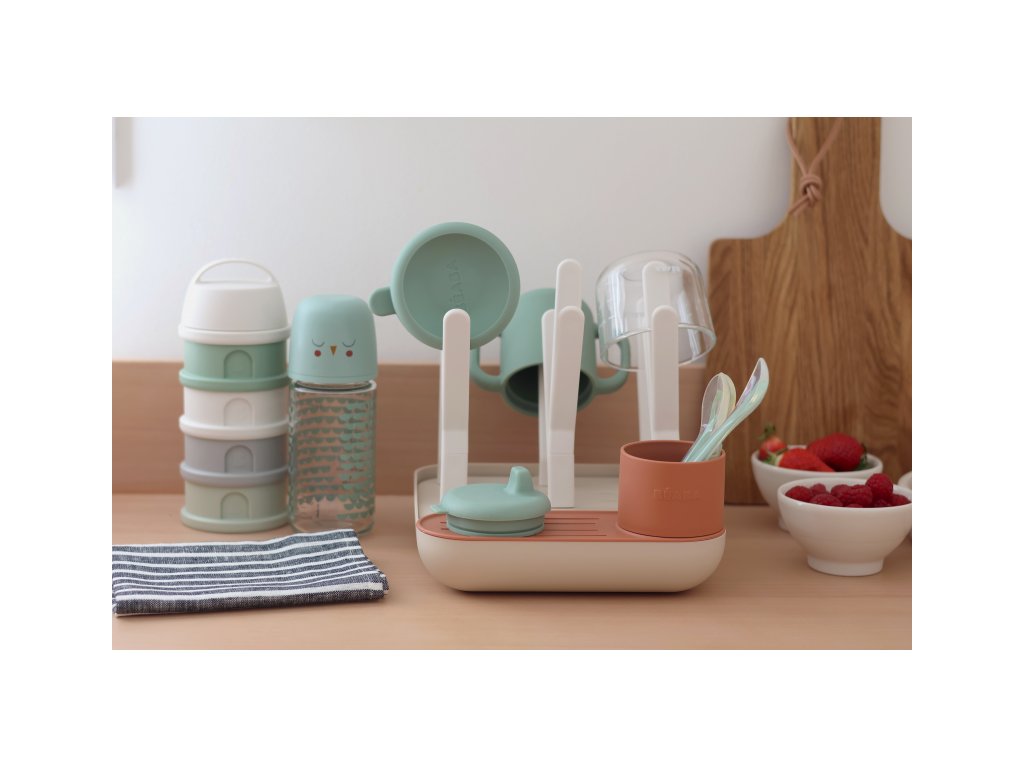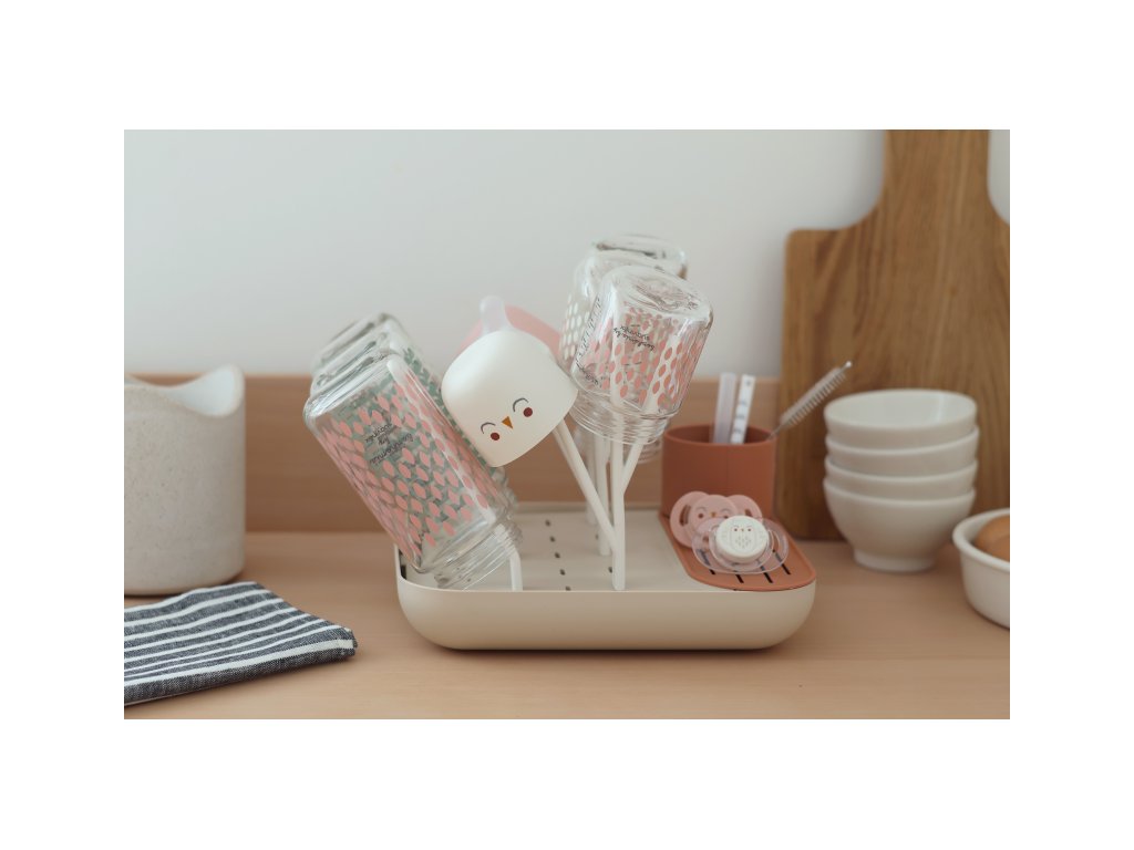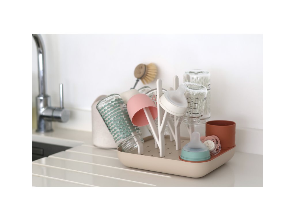 Variabilný stojan Beaba na sušenie dojčenských fliaš, hrnčekov, misiek, lyžičiek a doplnkov. Stojan má vyberateľné držiaky a umožňuje tak prispôsobiť jeho usporiadanie podľa typu a veľkosti riadu, ktorý na stojan potrebujete umiestniť. Odnímateľná základňa uľahčuje údržbu stojana a zároveň slúži na uloženie jednotlivých súčastí stojana, keď ho práve nepoužívate.