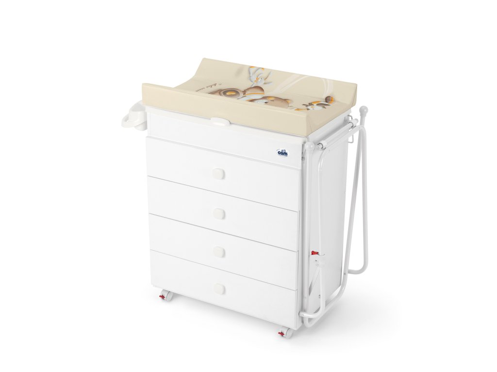 Praktický kovový stojan na vaničku, ktorý je možné pripojiť priamo k prebaľovacie komode Asia.
