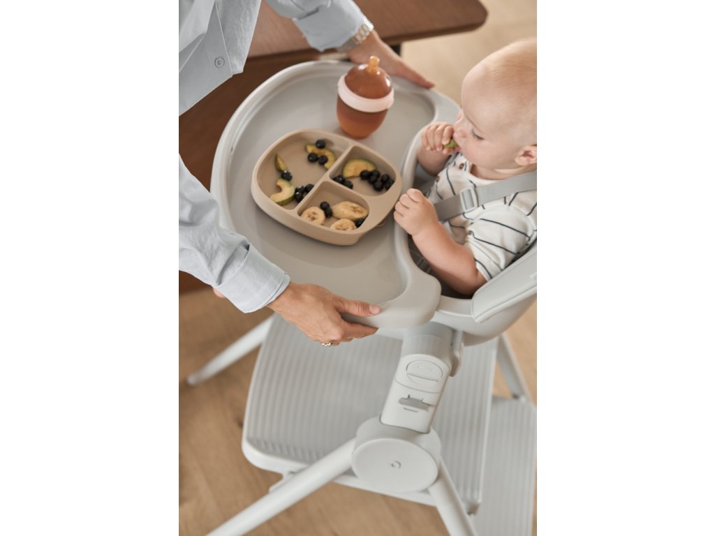 - Odnímateľný podnos - jedálenská stolička obsahuje nastaviteľnú jedálenskú tácku s dvoma polohami a odnímateľným krytom pre jednoduché čistenie.