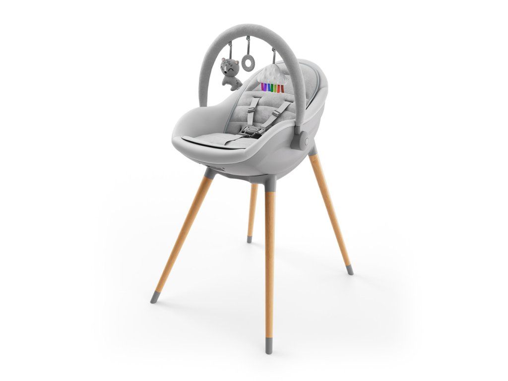 Súčasťou balenia je tiež mäkká novorodenecká vložka a hrazdička s tromi hračkami - drobnosť, ktorá zabaví ručičky a rodičom dopraje krátku, pokojnejšiu chvíľku. Celkový vzhľad dotvára bukové nohy, tlmené farby a mäkké materiály – FINI UP pôsobí ako premyslený kus nábytku, ktorý je súčasťou interiéru, nie ako „dočasná“ výbava. Po BLW nie je upratovanie boj - sedák aj pultík stačí rýchlo utrieť.