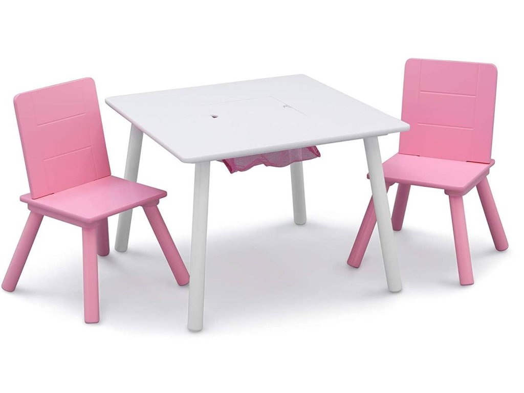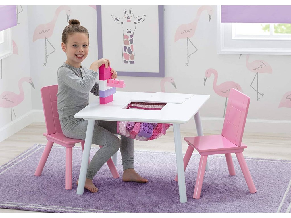 Krásny detský biely stolček s tajným úložným priestorom a ružovými stoličkami. Perfektné miesto na hranie, kreslenie a relaxáciu. Stôl je veľmi kvalitne spracovaný, pevný a stabilný. Stôl dopĺňajú dve stoličky. Deti tak budú mať svoje vyhradené miesto na hranie.