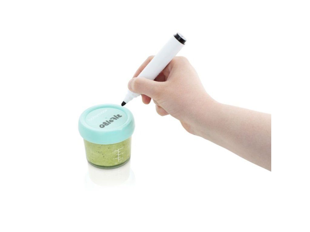 Babymoov skladovací misky majú objem 100ml a 220ml. Majú viečko so skrutkovacím uzáverom a hermetickým, silikónovým tesnením. Na stene misiek je stupnica (v ml a oz) a na vrchnej strane viečok je prepisovateľný povrch, kde si môžete jednoducho poznamenať uvarený pokrm a dátum, kedy bol pripravený.