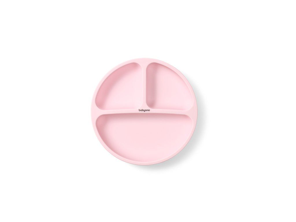 BABYONO Tanier silikónový s prísavkou - pink 6m+
