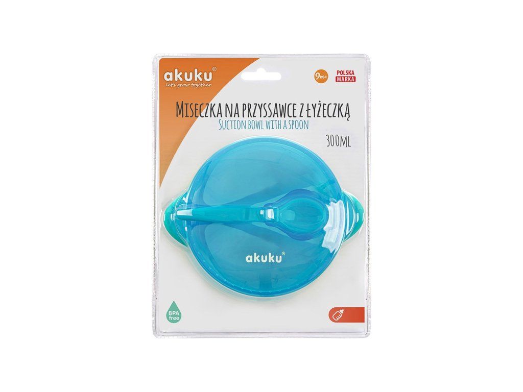 Detská miska s prísavkou a s lyžičkou Akuku pre deti. Miska je perfektným výrobkom pre kŕmenie Vášho dieťaťa. Viečko, ktoré tesne chráni pokrm, bolo vybavené špeciálne navrhnutou priehradkou na lyžičku. Gumová prísavka zabraňuje presúvaniu misky po stole. Tvar úchytu lyžičky napomáha ľahšiemu kŕmeniu počas chvíľ, kedy sa dieťa učí samo jesť. Vyrobená z kvalitného plastového materiálu. Určená pre deti od 6 mesiacov. Rozmery: cca 17x15x7 cm. Bez BPA. Možno umývať v umývačke riadu. Nie je určený na použitie v mikrovlnnej rúre.