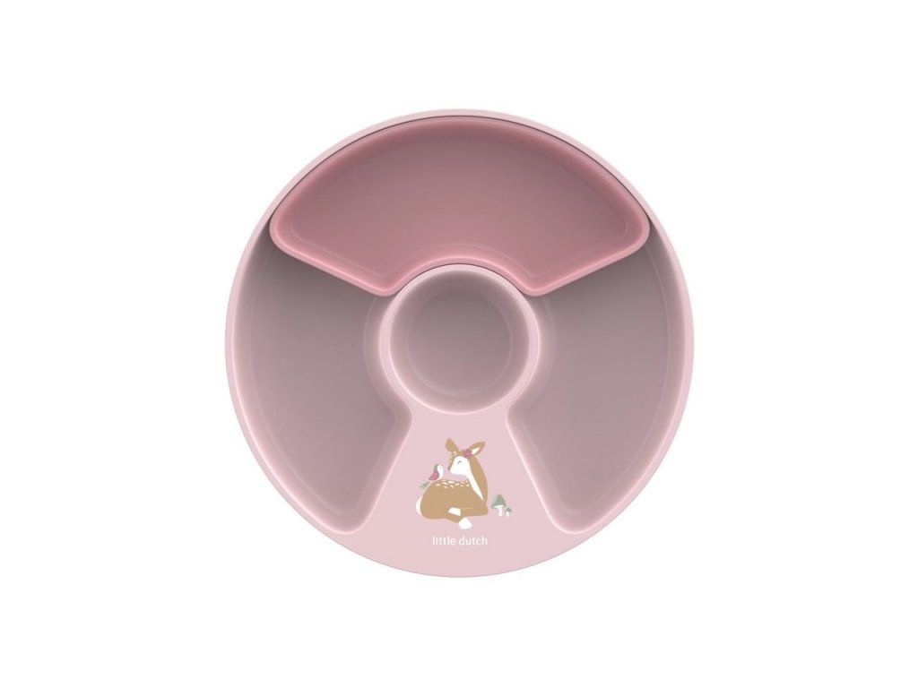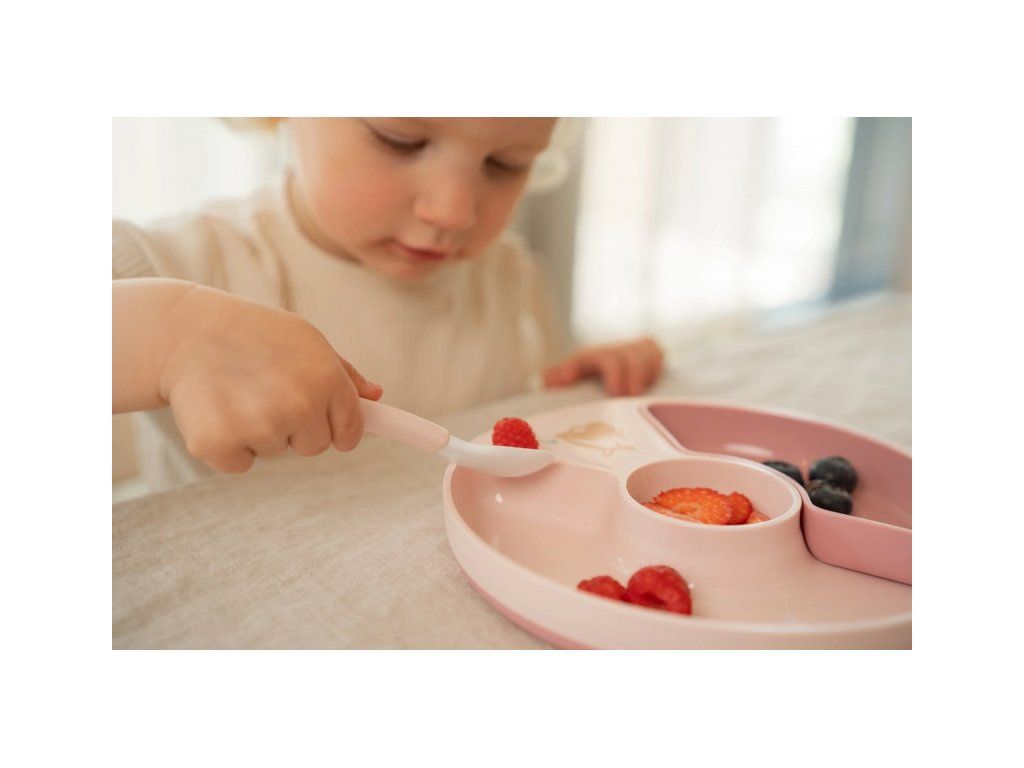 Detský tanier s krásnou potlačou má protišmykové dno a vysoký okraj, ktorý pomáha dieťaťu jedlo nabrať na lyžicu. Tanier je tak ideálny na prvé samostatné stolovanie dieťaťa. Vyberateľná priehradka umožňuje rozdelenie jednotlivých častí jedla do 2, 3 alebo 4 priehradok. Vďaka praktickému úchytu sa tanier ľahko prenáša. Je vyrobený z ľahkého, mimoriadne odolného plastu.