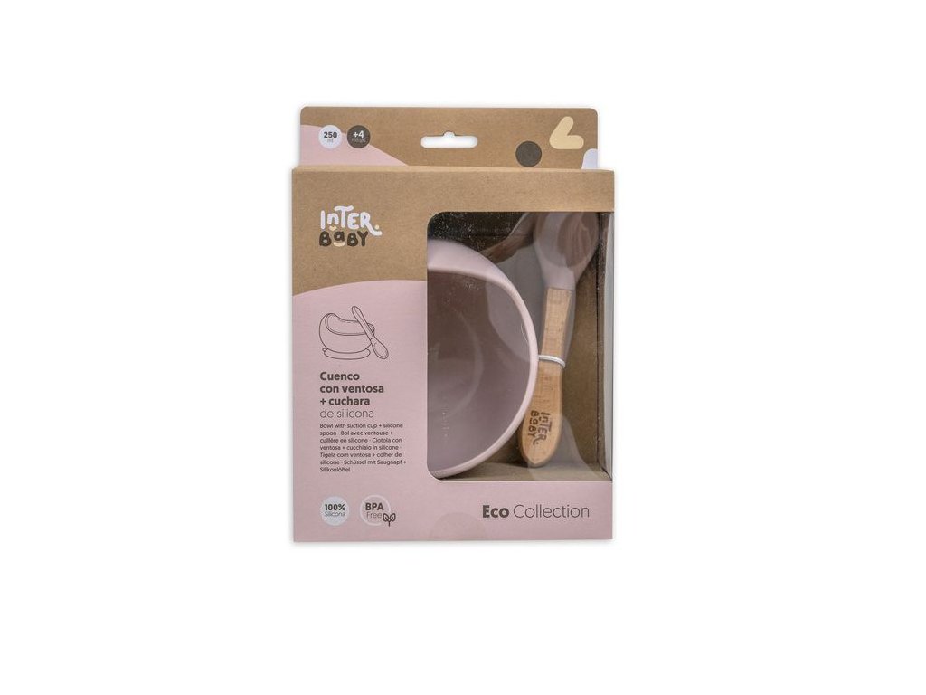 INTERBABY | MISKA silikonová + LYŽIČKA silikonová +4 m - ružová