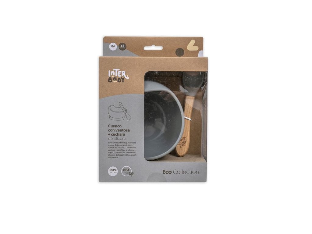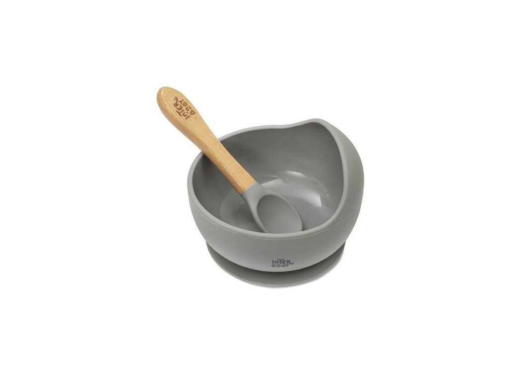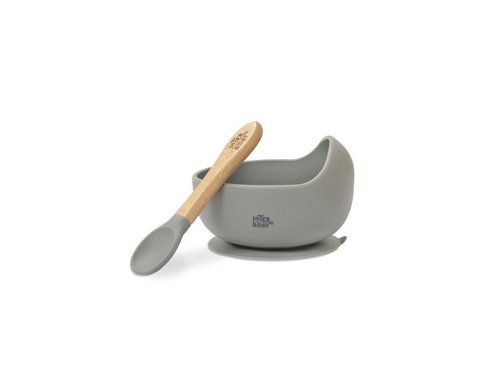 INTERBABY | MISKA silikonová + LYŽIČKA silikonová +4 m - sivá