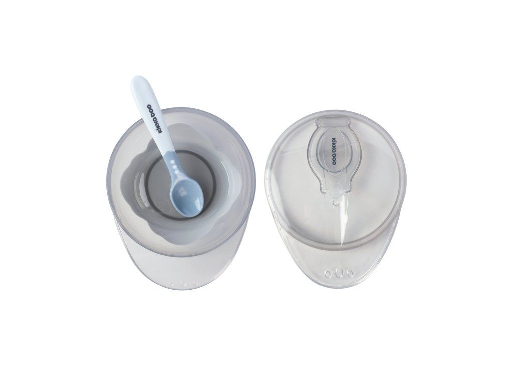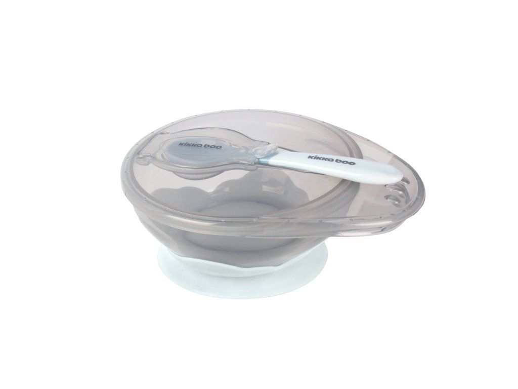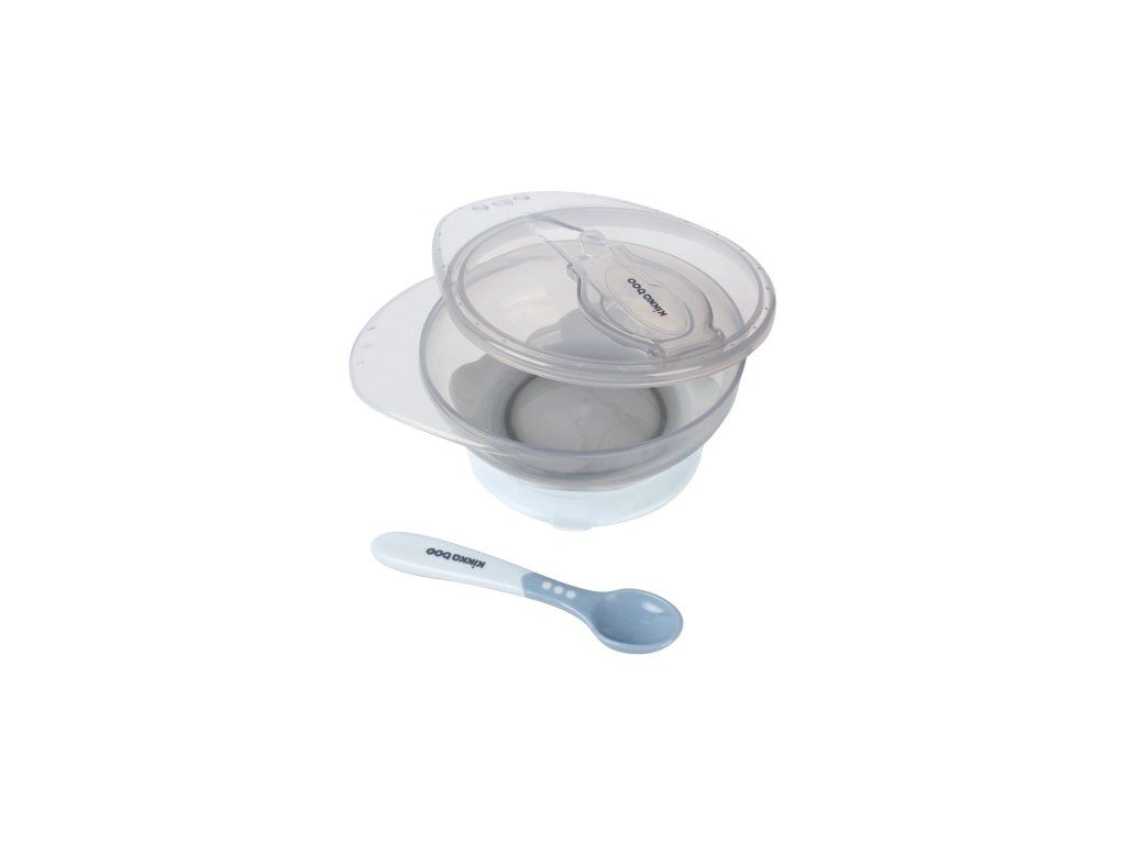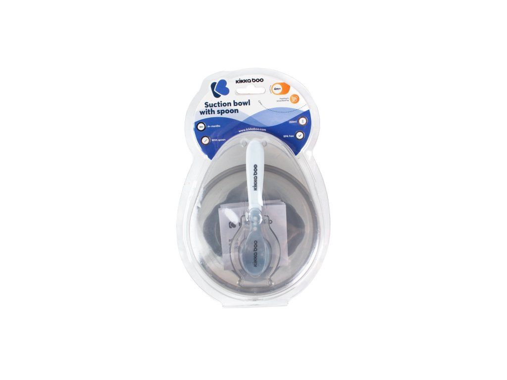 Detská miska KikkaBoo obsahuje misku s prísavkou, lyžičku a viečko. Vďaka prísavke sa miska nešmýka po stole či jedálnom pulte. Viečko sa ľahko otvára a umožňuje praktické uloženie lyžičky.
