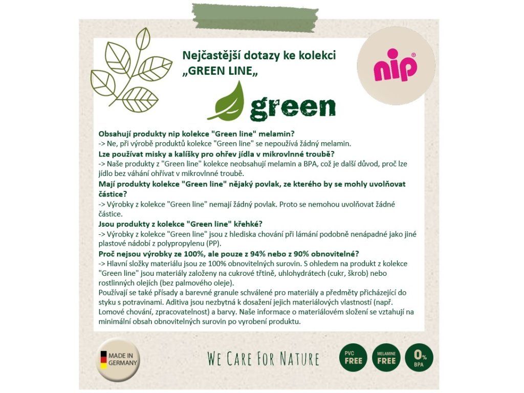 Všetky produkty kolekcie "Green line" sa skladajú najmenej z 90% obnoviteľných surovín.