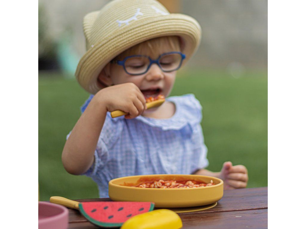 - ergonomický dizajn, tvarovaný s ohľadom na najmenších: zaoblené tvary uľahčujú jedenie