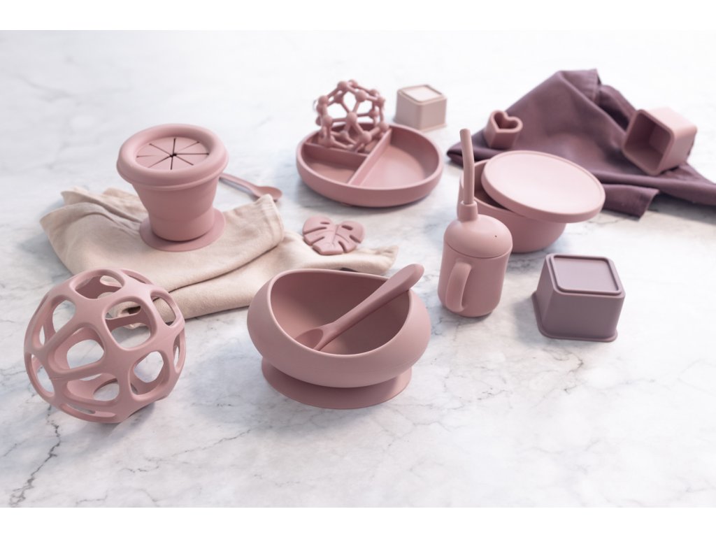 Silikónový delený tanier s prísavkou, Old Pink
