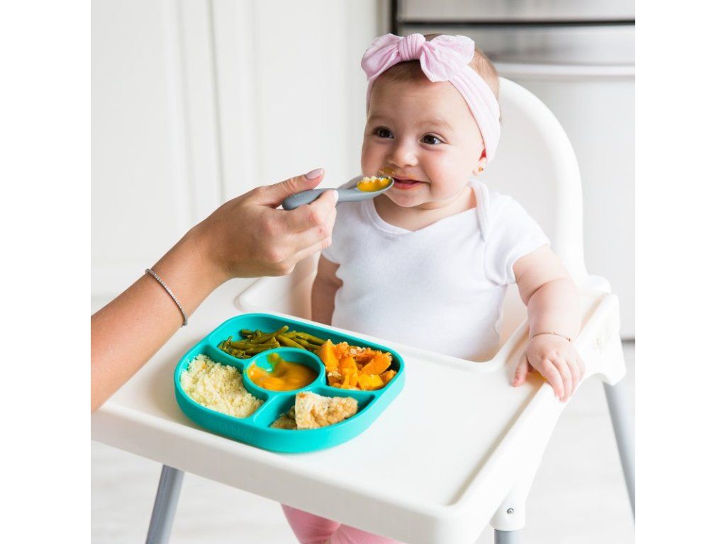 - vyvýšené okraje uľahčujú naberanie jedla a samostatné kŕmenie