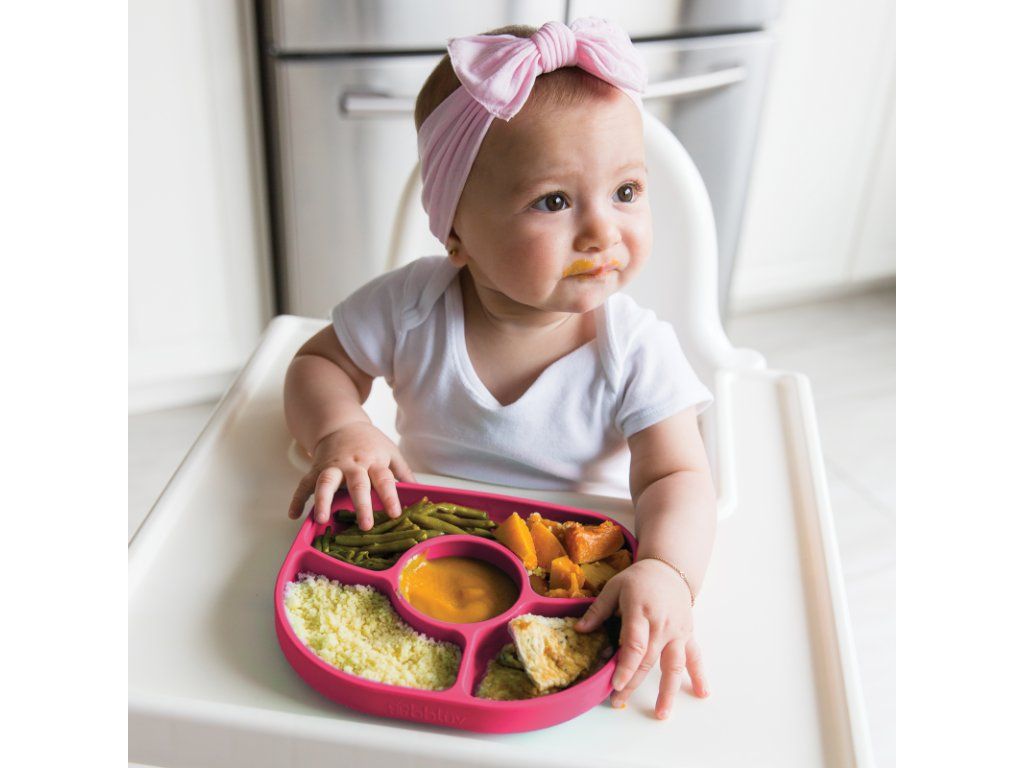 - vyvýšené okraje uľahčujú naberanie jedla a samostatné kŕmenie
