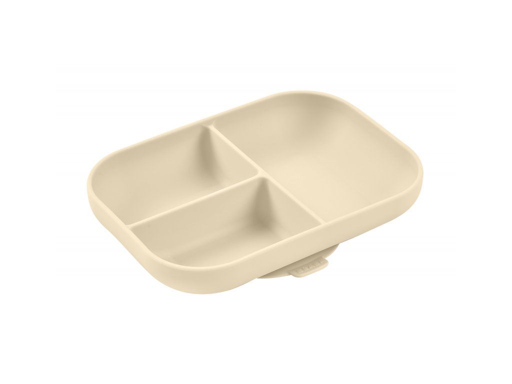 Tanier s prísavkou z vysoko kvalitného silikónu umožňuje uchytenie k stolu alebo pultu jedálenskej stoličky. Ergonomický tvar uľahčuje naberanie príkrmu. Tri priehradky umožňujú oddelené servírovanie jednotlivých súčastí detského pokrmu.