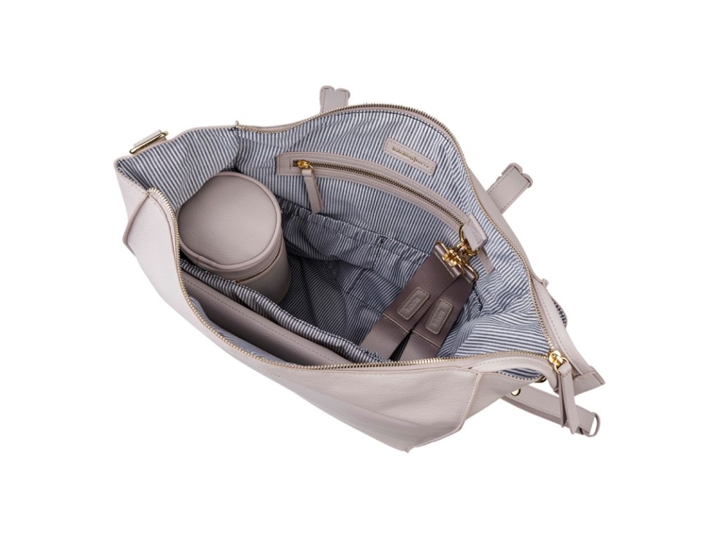 Je plná úžasných funkcií – obsahuje termoizolačný obal na fľašu, veľkú umývateľnú prebaľovaciu podložku, popruhy na upevnenie tašky ku kočíku a veľa užitočných vreciek v priestrannom interiéri. To všetko prichádza v modernej textílii, ktorá nielen že dobre vyzerá, ale je aj veľmi praktická.