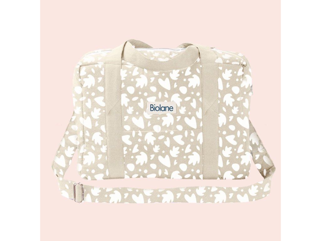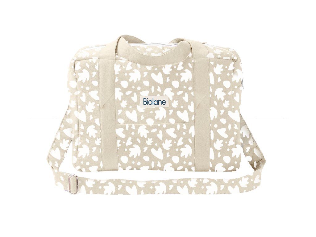 Taška je vhodná aj ako taška do pôrodnice – pohodlne do nej uložíte všetko potrebné pre mamičku aj bábätko. Je vybavená pevnými ušami do ruky a nastaviteľným ramenným popruhom pre komfortné nosenie. Jemný prírodný motív s logom Biolane dodáva taške moderný a nadčasový vzhľad.