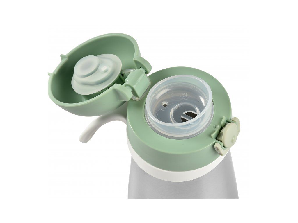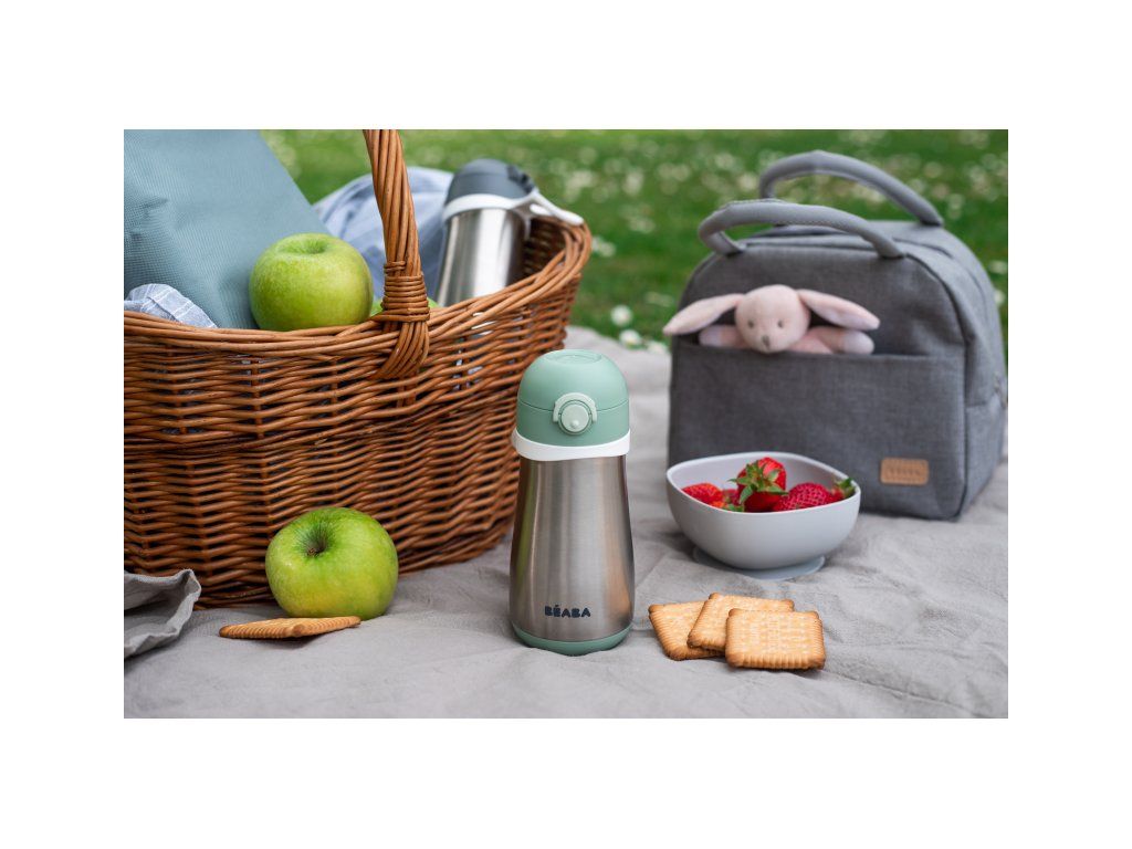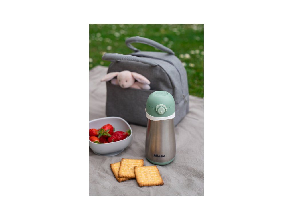 Termoizolačný hrnček Beaba vyrobený z vysoko kvalitnej dvojstennej ocele udrží nápoj dlhšie teplý alebo studený. Je tak vhodný na zahriatie teplým nápojom počas prechádzok v zime a naopak na osvieženie chladným nápojom počas horúcich letných dní.