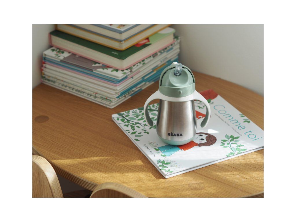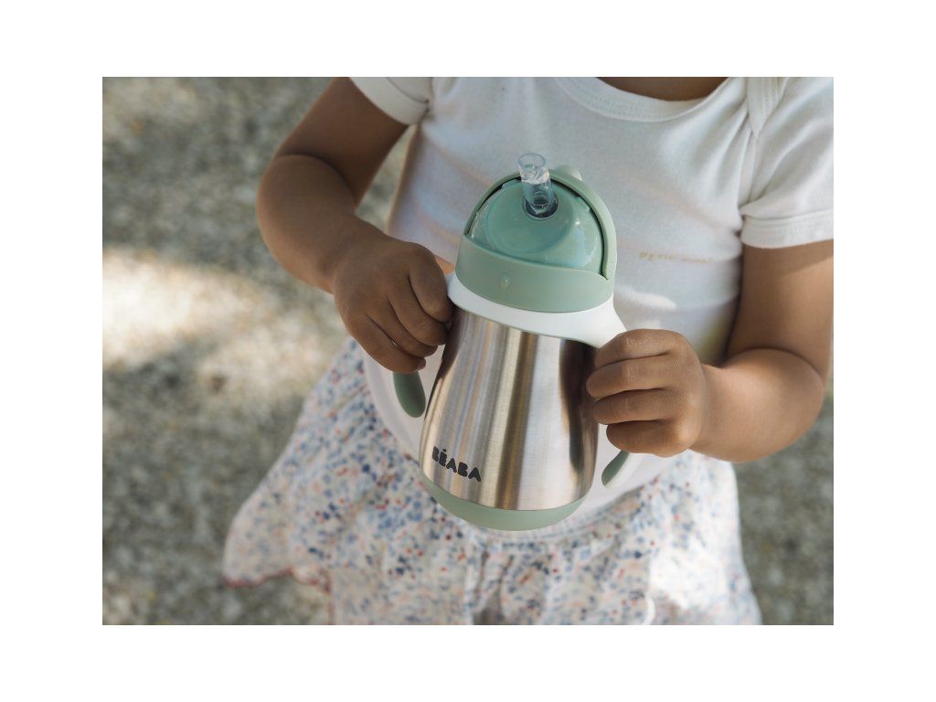 Termoizolačný hrnček Beaba vyrobený z vysoko kvalitnej dvojstennej ocele udrží nápoj až 6 hodín teplý a až 7 hodín studený. Je tak vhodný na zahriatie teplým nápojom počas prechádzok v zime a naopak na osvieženie chladným nápojom počas horúcich letných dní.