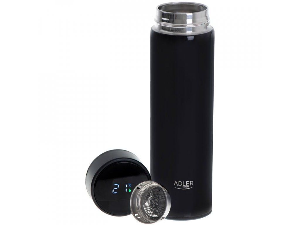 Termoska Adler AD4506 s LED dotykovým displejom, indikujúcim aktuálnu teplotu nápoja, je skvelým riešením pre milovníkov horúcich nápojov. Môžete tak jednoducho sledovať teplotu vášho obľúbeného nápoja v reálnom čase. LED displej umožňuje presné odčítanie teploty, čím sa vyhnete popáleniu alebo vypitiu príliš studených nápojov. Dotykový displej navyše robí ovládanie termosky jednoduchým a intuitívnym. Prístroj má presný tepelný senzor - odčítanie teploty po otočení hore nohami na 3 sekundy. Vákuová izolácia a dvojité steny udržia nápoje horúce 8 hodín alebo studené až 12 hodín. Súprava obsahuje sitko, ktoré oddeľuje kávovú alebo čajovú usadeninu. Vstavaná batéria LED displeja má veľmi dlhú výdrž až 30 000 dotykov. Objem termosky je 473 ml.Hlavným poznávacím znakom tejto termosky je vstavaný LED displej. Vďaka nemu si jednoducho skontrolujete aktuálnu teplotu obsahu termosky bez toho, aby ste ju museli otvárať. LED displej je čitateľný a jasný, umiestnený na vonkajšom povrchu termosky, vďaka čomu je odčítanie teploty mimoriadne pohodlné. Táto moderná termoska je nielen praktickým zariadením, ale aj štýlovým doplnkom pre ľudí, ktorí si cenia pohodlie a moderné riešenia.Charakteristika a technické údaje: LED termoska Dotykový LED displej - zobrazuje aktuálnu teplotu nápoja Presný tepelný senzor - odčítanie teploty po otočení hore nohami na 3 sekundy Spoľahlivá tesnosť Kapacita 473 ml Vákuová izolácia a dvojité steny udržujú teplotu pre: - teplé nápoje 8 hodín - studené nápoje 12 hodín Varovný indikátor: - zelená kvapka: teplota pod 35°C - váš nápoj je vlažný - oranžová kvapka: teplota 36-59°C - horúci nápoj - červená kvapka: teplota nad 60°C - veľmi horúci nápoj, buďte opatrní Sitko oddeľujúce usadeninu (mletú kávu a čajové lístky) od tekutiny Vnútro výrobku a sitko sú vyrobené z kvalitnej potravinárskej nerezovej ocele SS304 Bez BPA, netoxické silikónové tesnenie, bezpečné pre zdravie Vstavaná batéria s vodotesným vekom, bezpečná pre deti Životnosť batérie: 30 000 dotykov Lítiová batéria (nevyberateľná): 1 x CR2032 3V Spodná nádoba na nápoje je vhodná do umývačky riadu Priemer produktu je vhodný pre väčšinu držiakov automobilov a bicyklov Rozmery produktu: výška 23,4 cm x priemer 6,4 cm Hmotnosť produktu: 0,245 kgAdler Europe Group ponúka kvalitné výrobky, ktoré oceňujú milióny zákazníkov v Európe, za prijateľnú cenu. Značka začala svoju činnosť na poľskom trhu od roku 2002, odkiaľ sa postupne rozšírila do celej Európy. ,,Už 27 rokov sa riadime myšlienkou poskytovať vysoko kvalitné vybavenie čo najväčšiemu počtu zákazníkov. Dôkladným pochopením potrieb domácností sme vytvorili viac ako 800 produktov, ktoré doteraz ocenili v 35 krajinách po celom svete. Zákazníci si vyberajú naše výrobky pre svoje pohodlie, atraktívny vzhľad a dobrý pomer cena / kvalita. Sledujeme meniace sa trendy na trhu, aby sme technicky a vizuálne uspokojili očakávania našich zákazníkov.‘‘Dodatočné parametre