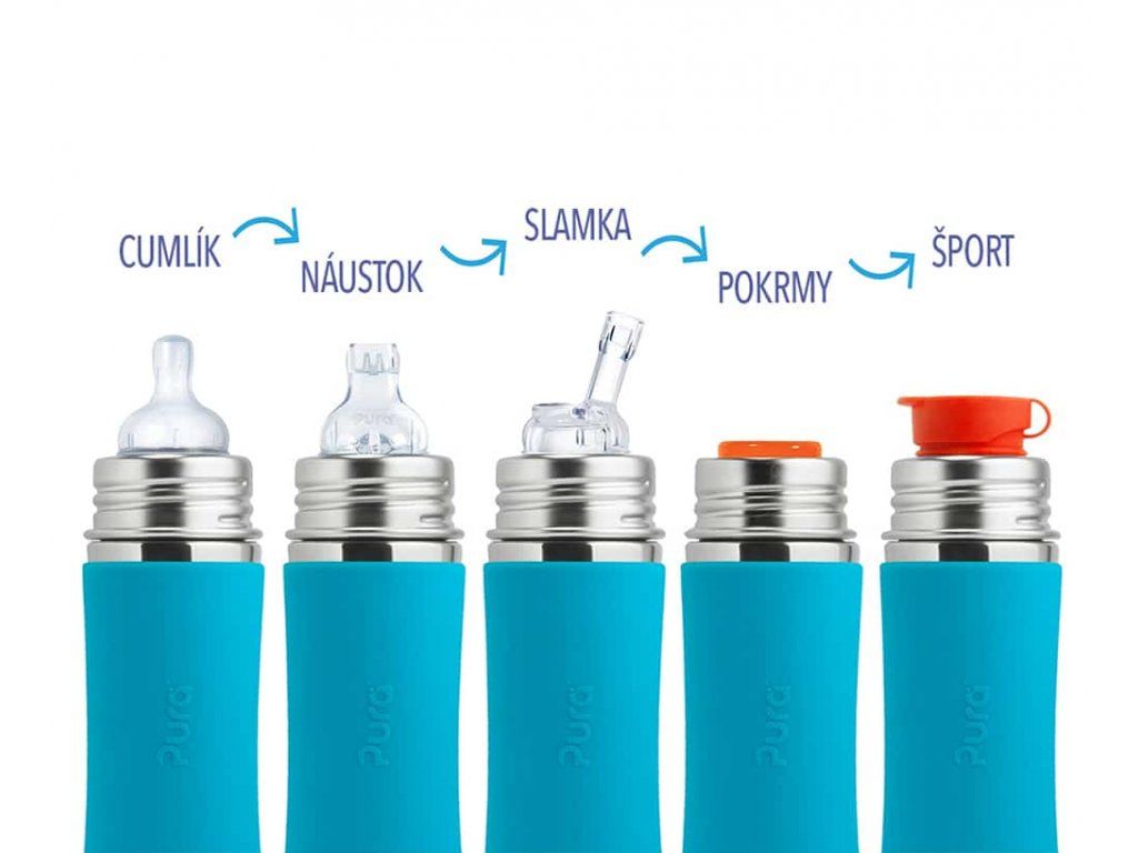 Konečne bezpečná fľaša vyrobená 100% bez plastových častí. S Pura fľašami si môžete byť istí, že sa do nápoja vnútri neuvoľňujú žiadne škodlivé látky a toxíny, ani príchute a pachy ako je tomu u plastových fliaš alebo fliaš s plastovými vrchnákmi. Na ničom nezáleží viac ako na zdraví Vašich detí a Vás.Kvalitná vákuová termoizolácia udrží tekutinu teplú až 6 hodín a studenú až 24 hodín (s ľadom).Pura fľaše sa navyše prispôsobujú a “rastú” s Vašim dieťaťom. Jednoduchou výmenou uzáverov sa fľaša mení z dojčenskej fľaše na fľašu s náustkom, slamkou alebo športovým uzáverom či na pohárik na príkrmy a občerstvenie. Môžete tak jednu fľašu používať mnoho rokov. One Life… One Bottle™.Najbezpečnejšia, najuniverzálnejšia, ľahká a nerozbitná ekologická fľaša ocenená viac ako 35 oceneniami. Prvá fľaša na trhu 100% bez plastových častí a jediná fľaša, ktorá získala certifikát Made Safe® . Vákuová termoizolácia udrží tekutinu teplú až 6 hodín a studenú až 24 hodín (s ľadom). Baby Grows… Bottle Evolves™ - patentovaný systém umožňuje použiť akúkoľvek Pura fľašu s akýmkoľvek Pura uzáverom. Jednoducho tak zmeníte dojčenskú fľašu na fľašu s náustkom, slamkou, alebo športovým uzáverom alebo s použitím tesniaceho disku na pohárik na príkrmy a drobné občerstvenie. Jednu fľašu tak môžete používať roky a zároveň šetríte peniaze aj životné prostredie. Fľaša a objímka sú vyrobené z prvotriednej potravinárskej nerezovej ocele triedy 304 (18/8) a ostatné časti zo silikónu najvyššej medicínskej kvality. Bez BPA, PVC, ftalátov a bez akýchkoľvek iných nebezpečných látok a toxínov, testované podľa smerníc EÚ. Antikolikový cumlík Pura Natural Vent Nipple so stredným prietokom vyrobený zo silikónu medicínskej kvality. Fľaša je kompatibilná s cumlíkmi mnohých iných značiek. Mierka na vnútornej strane pre pohodlné a presné dávkovanie. Súčasťou je silikónový vrchnák chrániaci cumlík a vymeniteľný farebný silikónový návlek na fľašu pre lepšie uchopenie a izoláciu. Nevhodné do umývačky riadu. Pre zachovanie termo-izolačných vlastností odporúčame fľašu umývať ručne. Nesterilizovať. Doživotná zaruka na časti z nerezovej ocele. Nevzťahuje sa na mechanické poškodenie fľaše. Váha: 182gRozmery: 5,9 x 19,6cmBalenie obsahuje: nerezovú fľašu s vákuovou termoizoláciou 260ml, nerezovú objímku, antikolikový cumlík Pura Natural Vent Nipple (stredný prietok), silikónový návlek a vrchnákDodatočné parametre