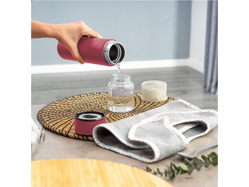 Pod viečkom sa skrýva 5 cm široký otvor pre ľahké plnenie termosky nielen nápojmi, ale napríklad aj krájaným čerstvým ovocím alebo zeleninou. Po použití je možné termosku ľahko očistiť a zaistiť tak hygienicky čisté používanie po dlhú dobu.