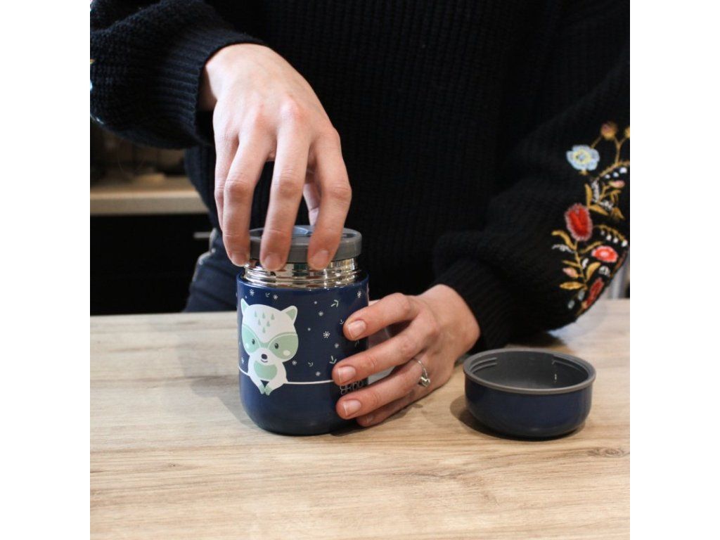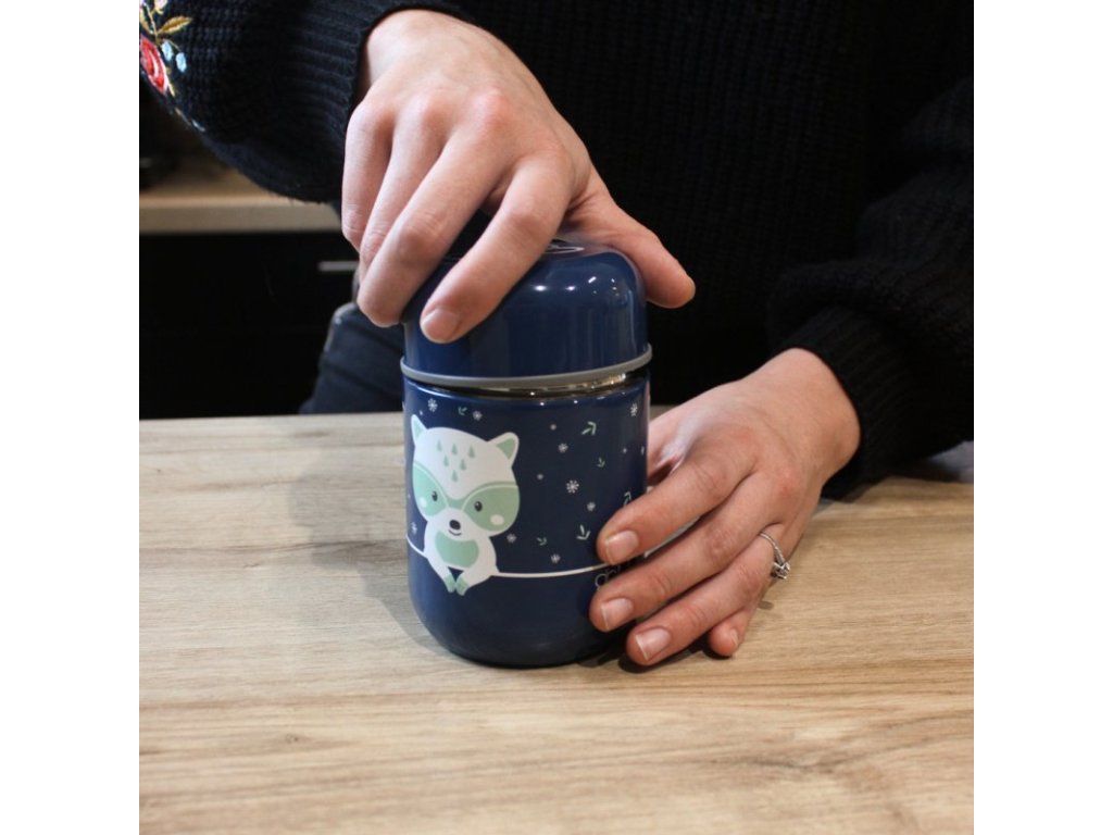 Termobox s lyžičkou Foöd Blue Racoon