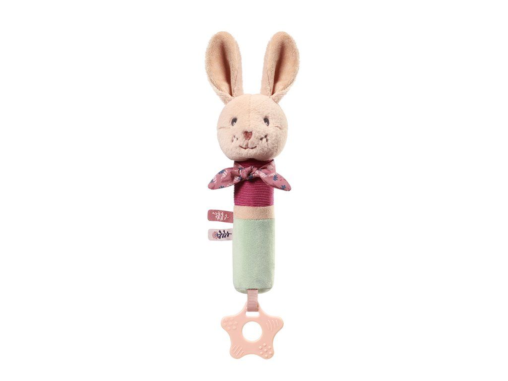 Rozkošná plyšová pískacia hračka Králik Karo prebúdza zvedavosť, rozvíja zmysly vášho dieťaťa a rozvíja jeho obratnosť. Ideálne pre maznanie a spoločné hranie!Podlhovastý tvar uľahčuje uchopenie a prenášanie. Keď vaše dieťa hračku stlačí, hračka vydáva zvuky, ktoré zapájajú jeho sluch a učia ho vzťahu príčiny a následku. Hračka má hryzátko s rôznymi výstupkami, ktoré jemne masírujú ďasná.