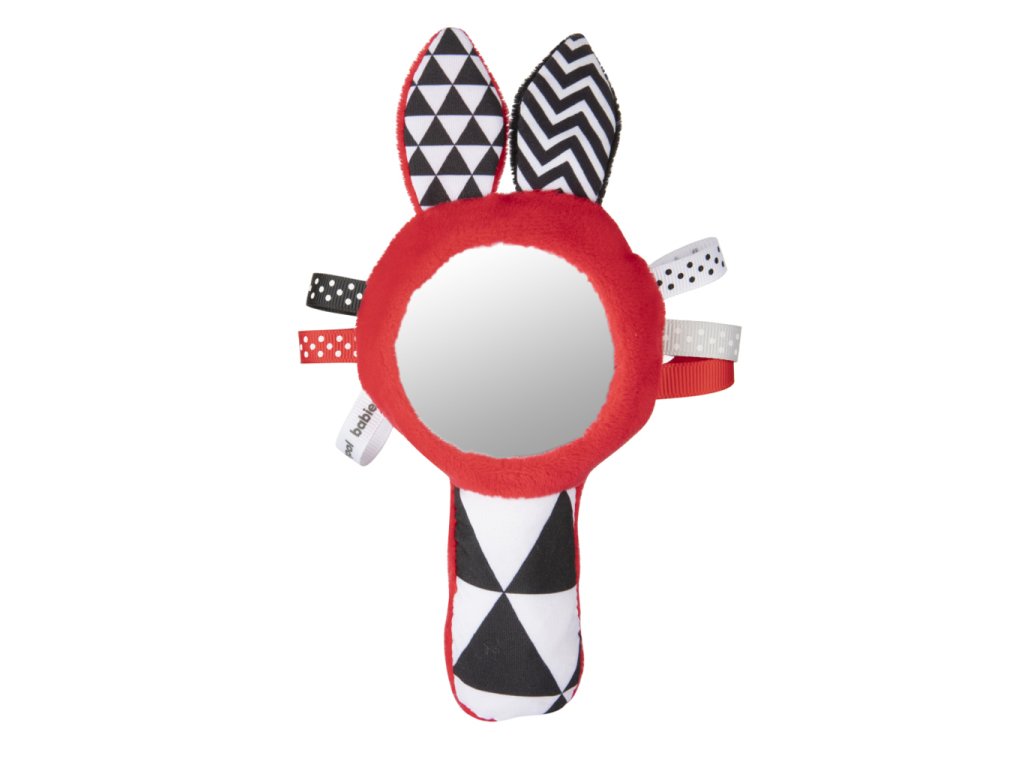 CANPOL BABIES Činka kontrastná pískacia so zrkadielkom Sensory