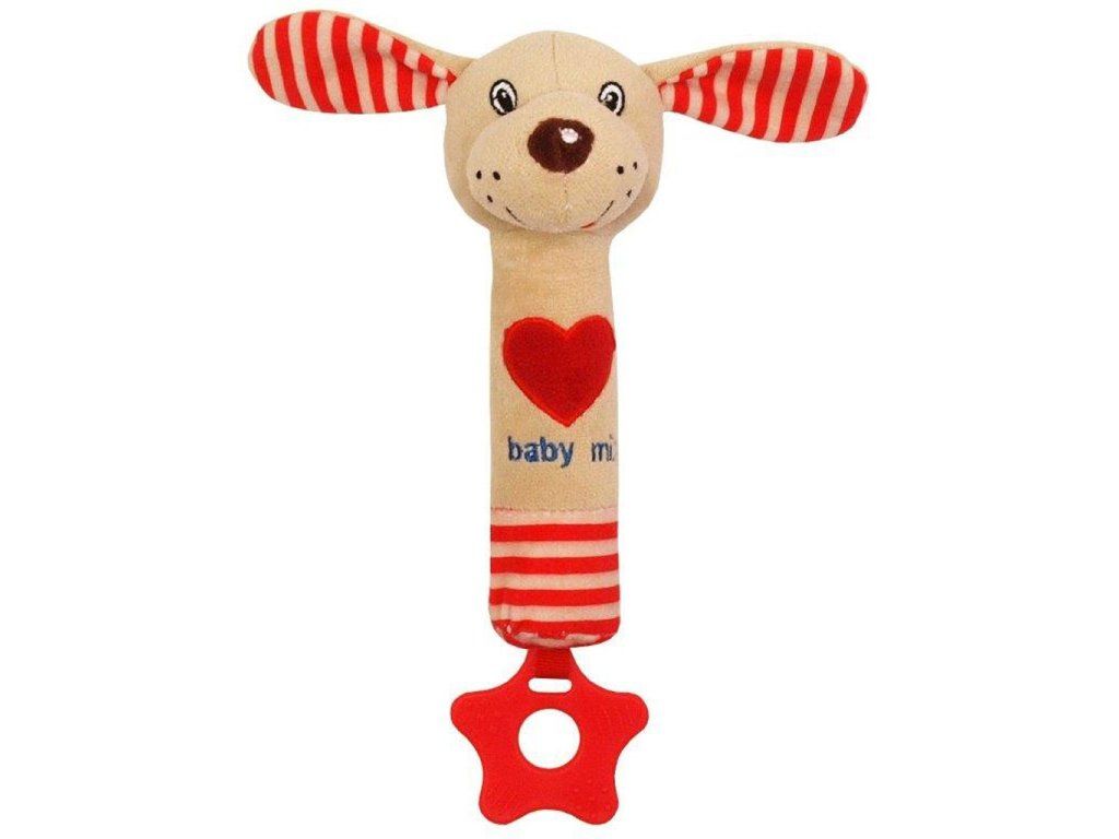 Detská pískacia plyšová hračka s hryzátkom Baby Mix psík červená - 33265