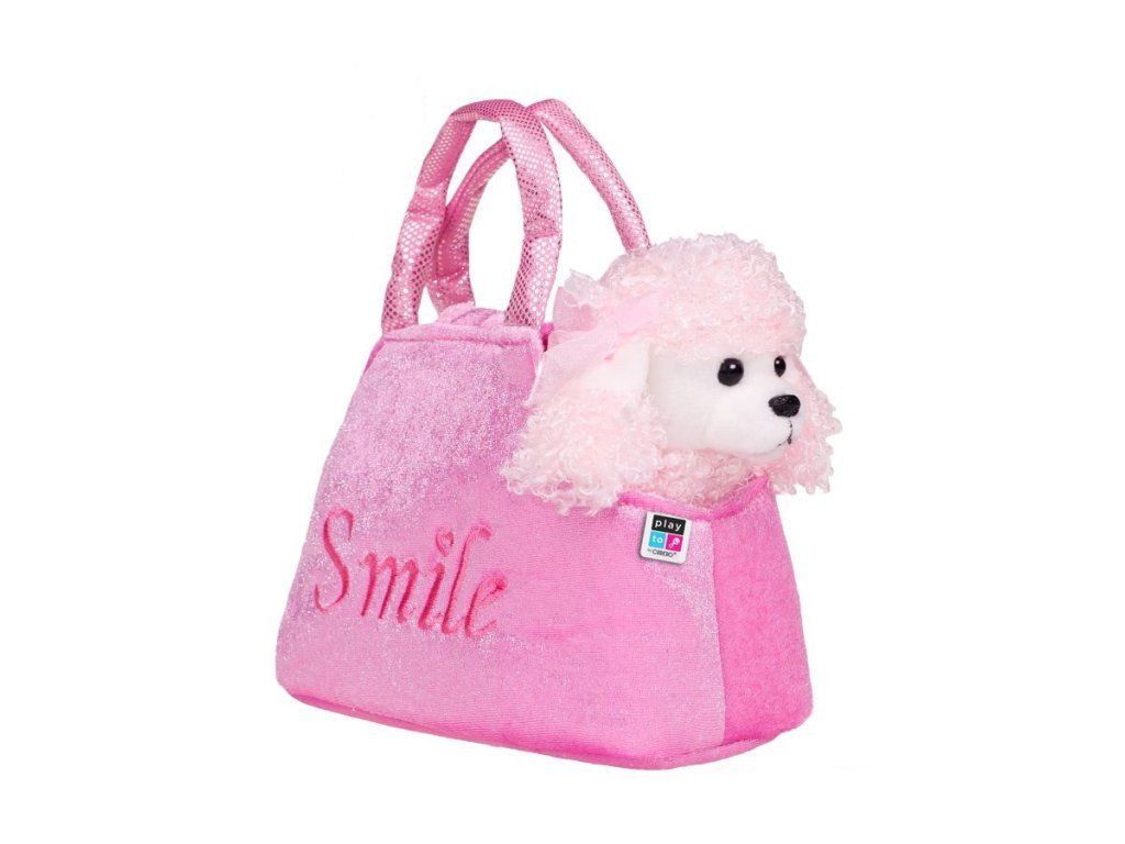 Detská plyšová hračka PlayTo Psík v kabelke. Psík je vyrobený z jemného plyšu. Má krásne a jemné kučierky a na uškách ozdobné mašličky. Taška sa zapína na suchý zips, je ozdobená obrázkami srdiečok a nápisom Smile. Je vyrobená z jemného semišu. Ušká na taške sa jemne ligocú. Rozmery: Pudlík: dxvxš: cca 22x15x12 cm. Taška: dxvxš: cca 22x21x7 cm.Dodatočné parametre