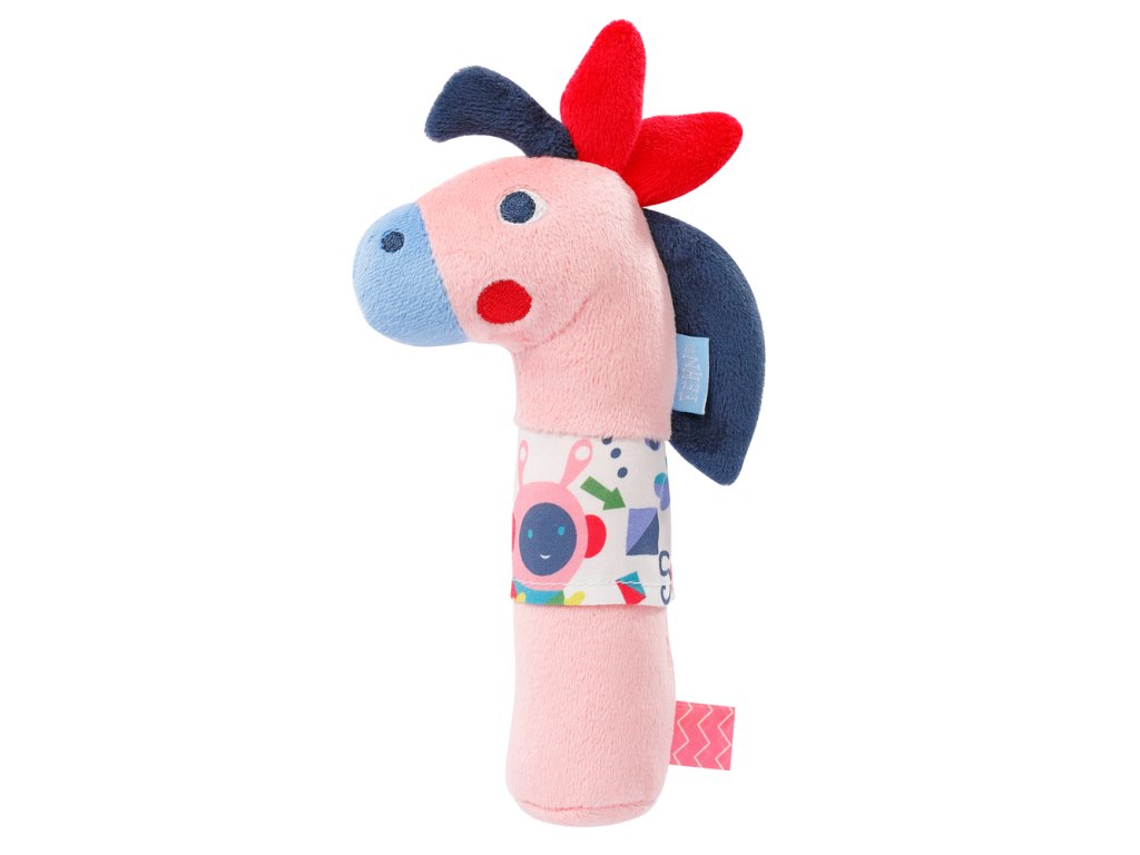 Textilný kôň z kolekcie COLOR Friends pozýva k uchopeniu, cíteniu, chrastěniu a pískaniu a vzbudzuje záujem dieťaťa. Hrkálka s piskotom ľahko podporuje sluch, uchopenie a dotyky, rovnako ako jemnú motoriku, a kôň je preto ideálny ako darček k narodeniu, krstu alebo narodeninám. Malí prieskumníci si farebného textilného koňa rýchlo zamilujú a zoberú ho so sebou kamkoľvek – či už doma, na cestách, v detskej sedačke alebo v kočíku!Dodatočné parametre