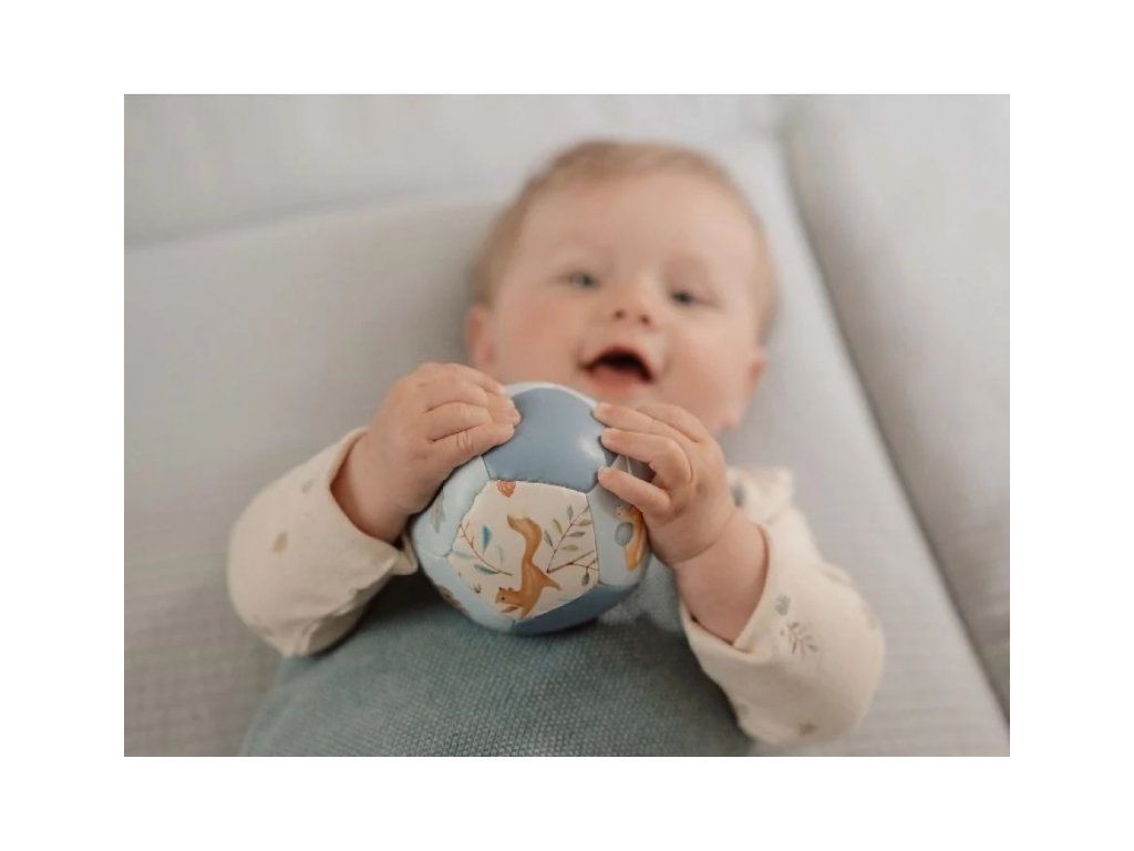 Mäkká loptička s krásnou potlačou motívov zo života v lese sa deťom ľahko drží aj kotúľa.