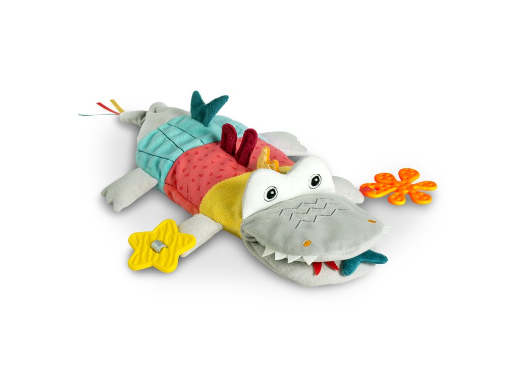 S látkovým maňáskom krokodíla je zábava z hrania zaručená. Hrkálky, praskací papier spolu s pestrými farbami vzbudzujú detskú zvedavosť a hravou formou podporujú zmysel pre zrak, sluch, motoriku a vnímanie a zároveň mäkké hryzátka pomáhajú pri prerezávaní zúbkov. Pre intenzívny kontakt medzi rodičmi, starými rodičmi alebo súrodencami a dieťaťom.
